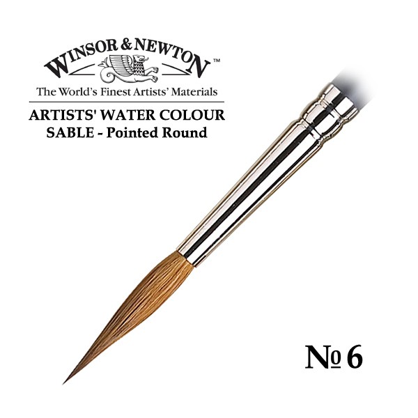 Соболь круглый c удлиненным кончиком Pointed Round - Short handle №6 для акварели