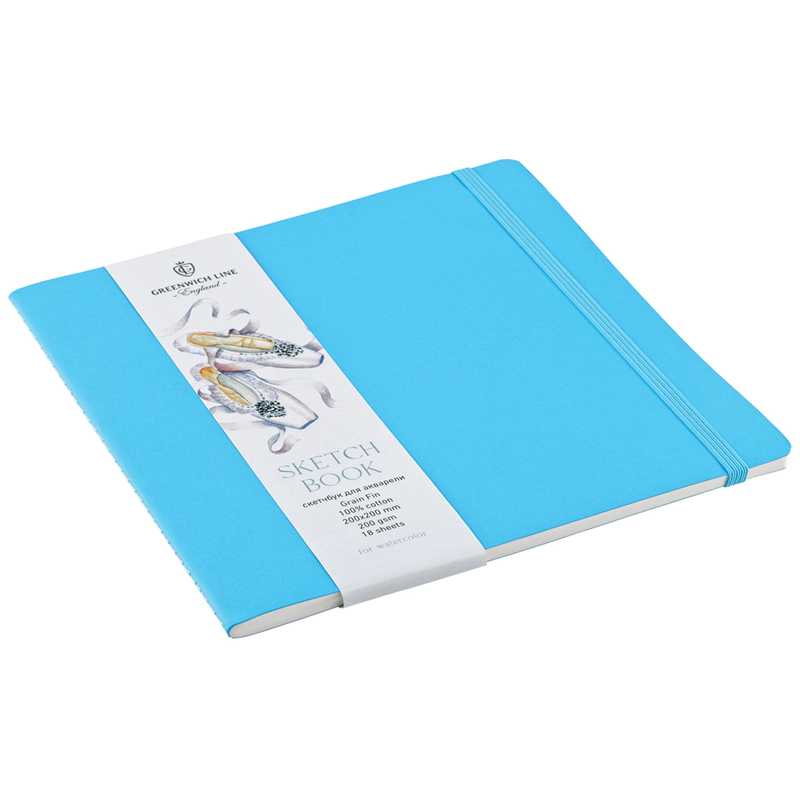 скетчбук для акварели Greenwich Line, лазурный, 100% хлопок, на резинке, 200*200мм, 200г/м2, 18л.;