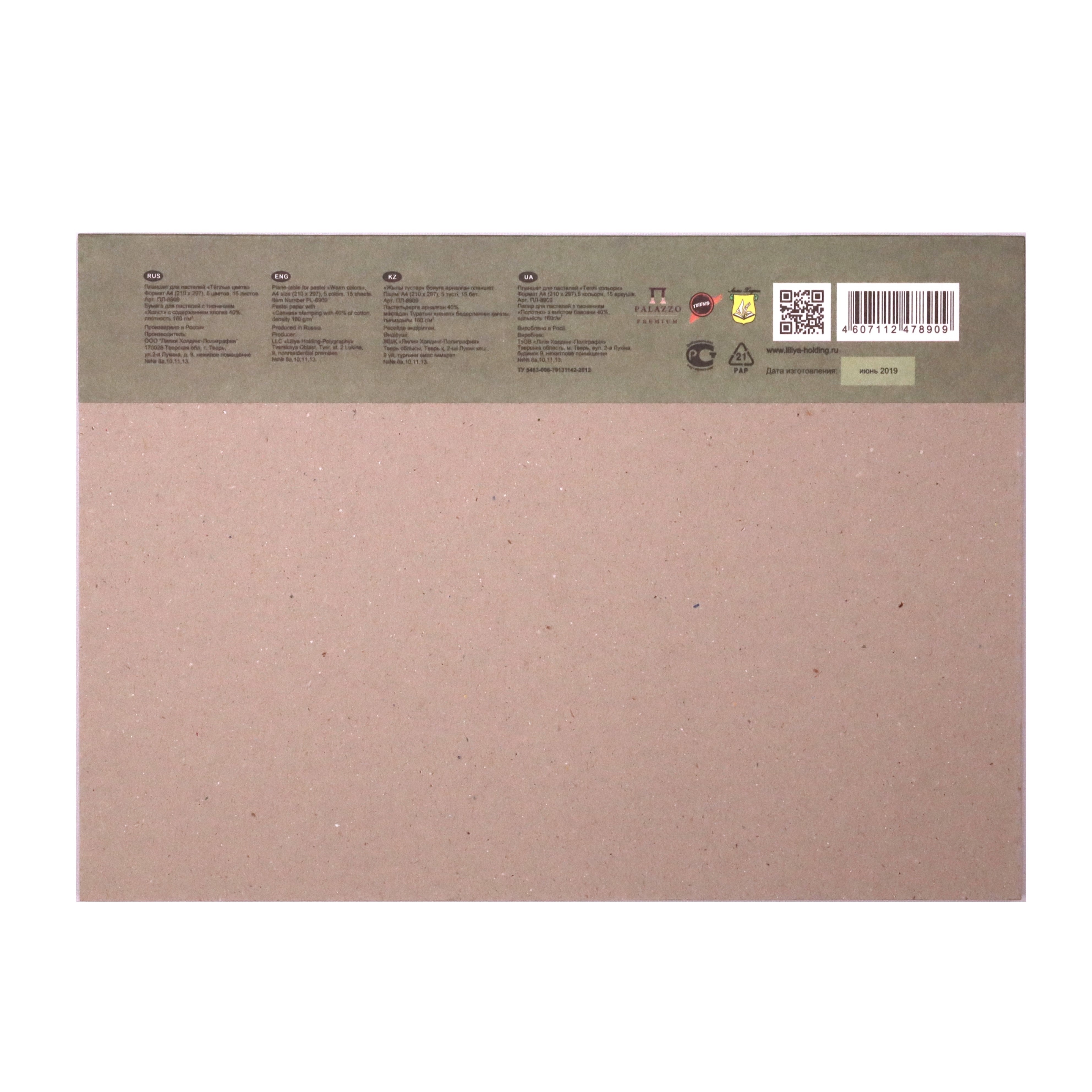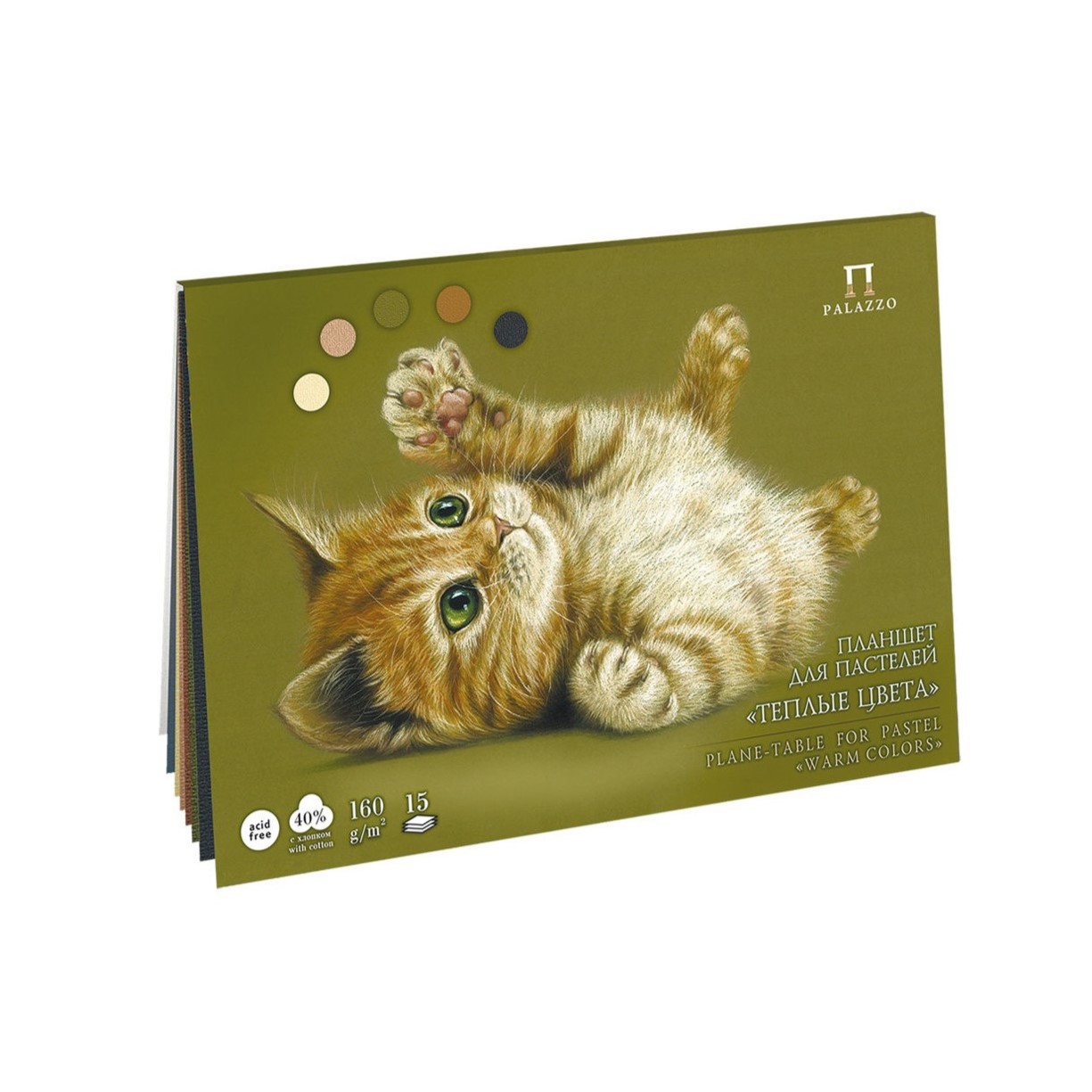 Планшет состоит из 15 листов и 5 цветов пастельной бумаги с жесткой подложкой из переплетного картона.