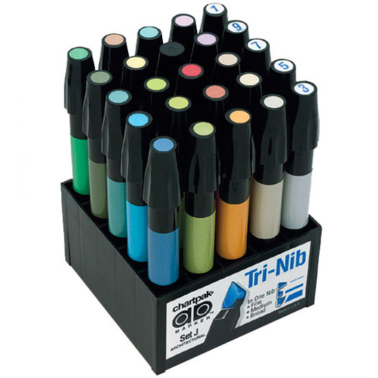 Маркеры Chartpak AD Markers отлично подойдут для дизайнеров за счет большого количества цветов, стойких чернил и удобного пера. Маркеры Chartpak AD Markers производятся в США. Перманентные чернила на основе растворителя, водостойкие. Универсальная форма пера маркера позволяет рисовать как тонкие, так широкие линии. Покрывные характеристики маркеров AD Marker более чем в 2 раза выше чем у обычных маркеров. Полная палитра цветов включает в себя 130 стойких, натуральных оттенков. У каждого цвета есть маркировка, номера цветов соответствуют номерам цветов в формате CMYK.