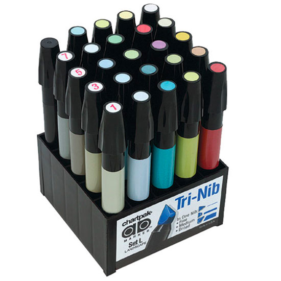 Маркеры Chartpak AD Markers отлично подойдут для дизайнеров за счет большого количества цветов, стойких чернил и удобного пера. Маркеры Chartpak AD Markers производятся в США. Перманентные чернила на основе растворителя, водостойкие. Универсальная форма пера маркера позволяет рисовать как тонкие, так широкие линии. Покрывные характеристики маркеров AD Marker более чем в 2 раза выше чем у обычных маркеров. Полная палитра цветов включает в себя 130 стойких, натуральных оттенков. У каждого цвета есть маркировка, номера цветов соответствуют номерам цветов в формате CMYK.