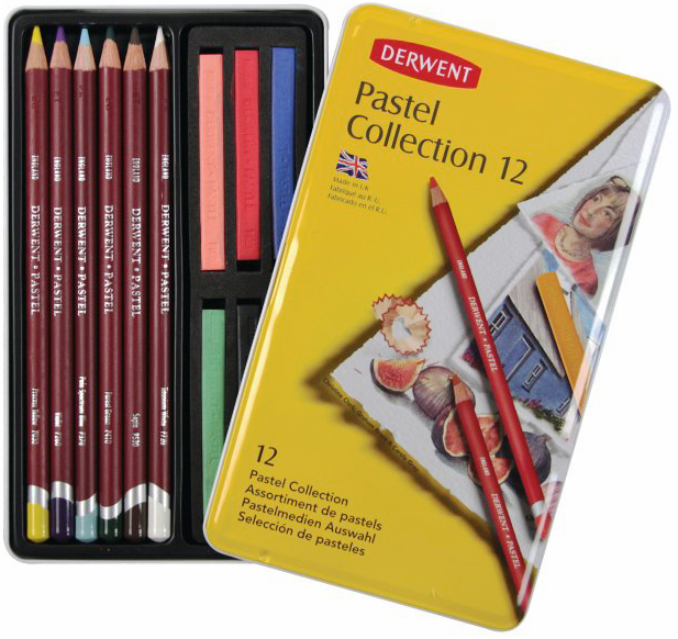 Набор Pastel Collection, 12 шт. в металлической коробке (6 шт. сухой пастели DTRWENT + 6 шт. пастельных карандашей PASTEL)