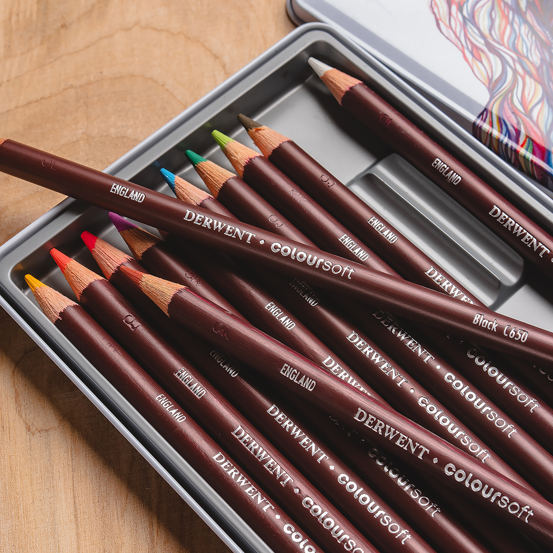 Набор цветных карандашей Coloursoft, мягкие, круглый корпус 8 мм, грифель - 4 мм, 36 шт. в металлической коробке. Цветные карандаши "Coloursoft" идеально подходят для широкого спектра техник - от смелых современных натюрмортов и портретов широкими мазками до работ, где требуется большая проработка мелких деталей - модная иллюстрацию, портреты животных, пейзажи.