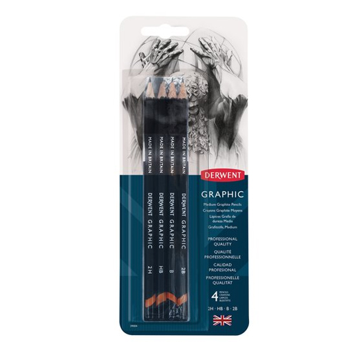 Набор чернографитовых карандашей Graphic, шестигранный корпус 6,9 мм, грифель - 3,5 мм, средние, степени твердости - 2B, B, HB, 2H, 4 шт. в блистере