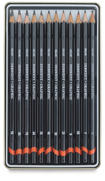 Набор чернографитовых карандашей Graphic, шестигранный корпус 6,9 мм, мягкие, степени твердости - B, 2B, 3B, 4B, 5B, 6B, 7B, 8B, 9B, HB, F, H,12 шт. в металлической коробке