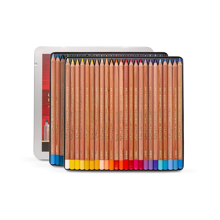Все карандаши в наборах заточены и упакованы в металлические пеналы.