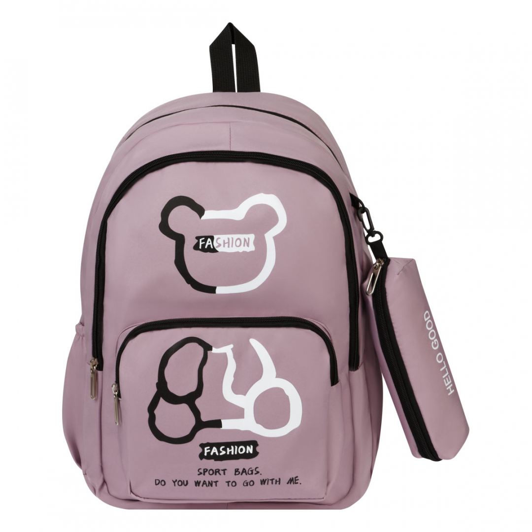 Комплект из рюкзака и пенала в нежно-розовом цвете подходит для прогулок и отдыха, учебы и шоппинга.