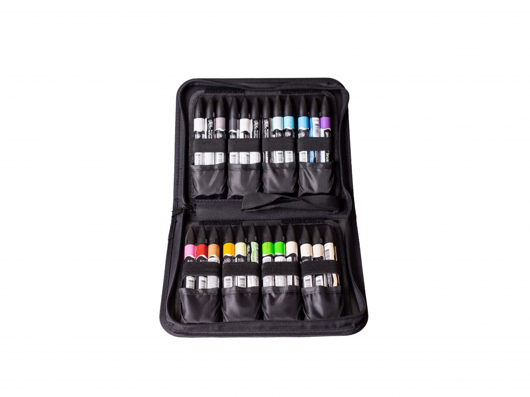 Набор состоит из 24 гармонично подобранных оттенков в фирменном тканевом пенале, удобном для транспортировки с надёжной молнией.
