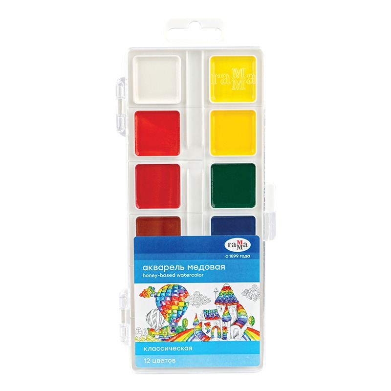 Акварель Гамма "Классическая", медовая, 12 цветов, без кисти, пластик. упак., европодвес