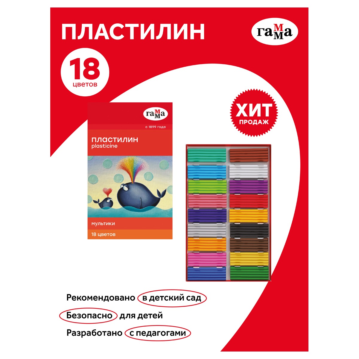 Классический пластилин ГАММА серии «Мультики» рекомендован педагогами для укрепления мышц кисти и развития мелкой моторики. После разминания обретает однородную структуру и пластичность: хорошо смешивается и размазывается, но не крошится. В наборе 18 цветов, вес одного бруска — 20 г. Пластиковый стек в комплекте.