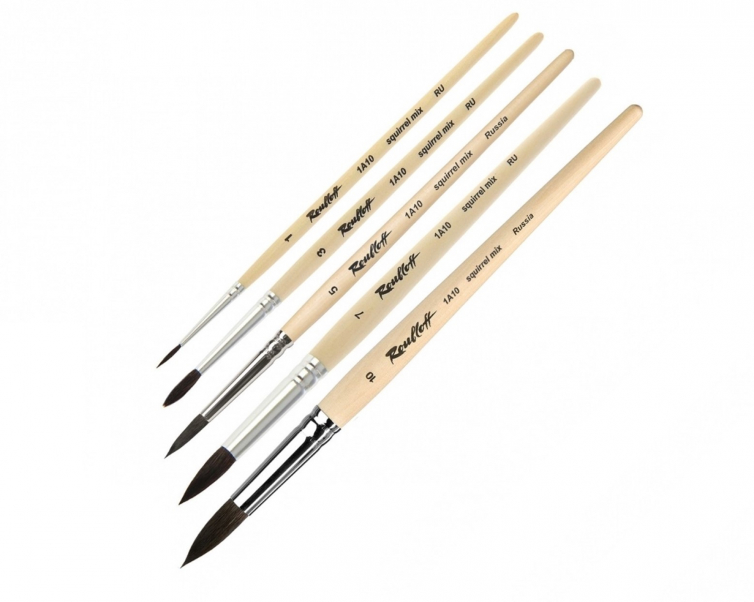 Комплект из 5-ти кистей из белки-микс от производителя Roubloff серии "1А10 " №1, 3, 5, 7, 10.