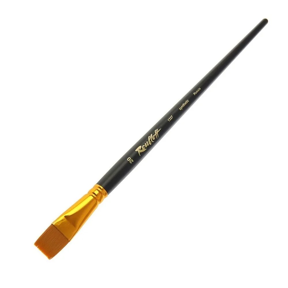 Плоская кисть из жесткого синтетического ворса удобна в использовании за счет сбалансированной длины, что позволяет работать за мольбертом, удерживая руку на расстоянии, и оценивать композицию в общем виде.