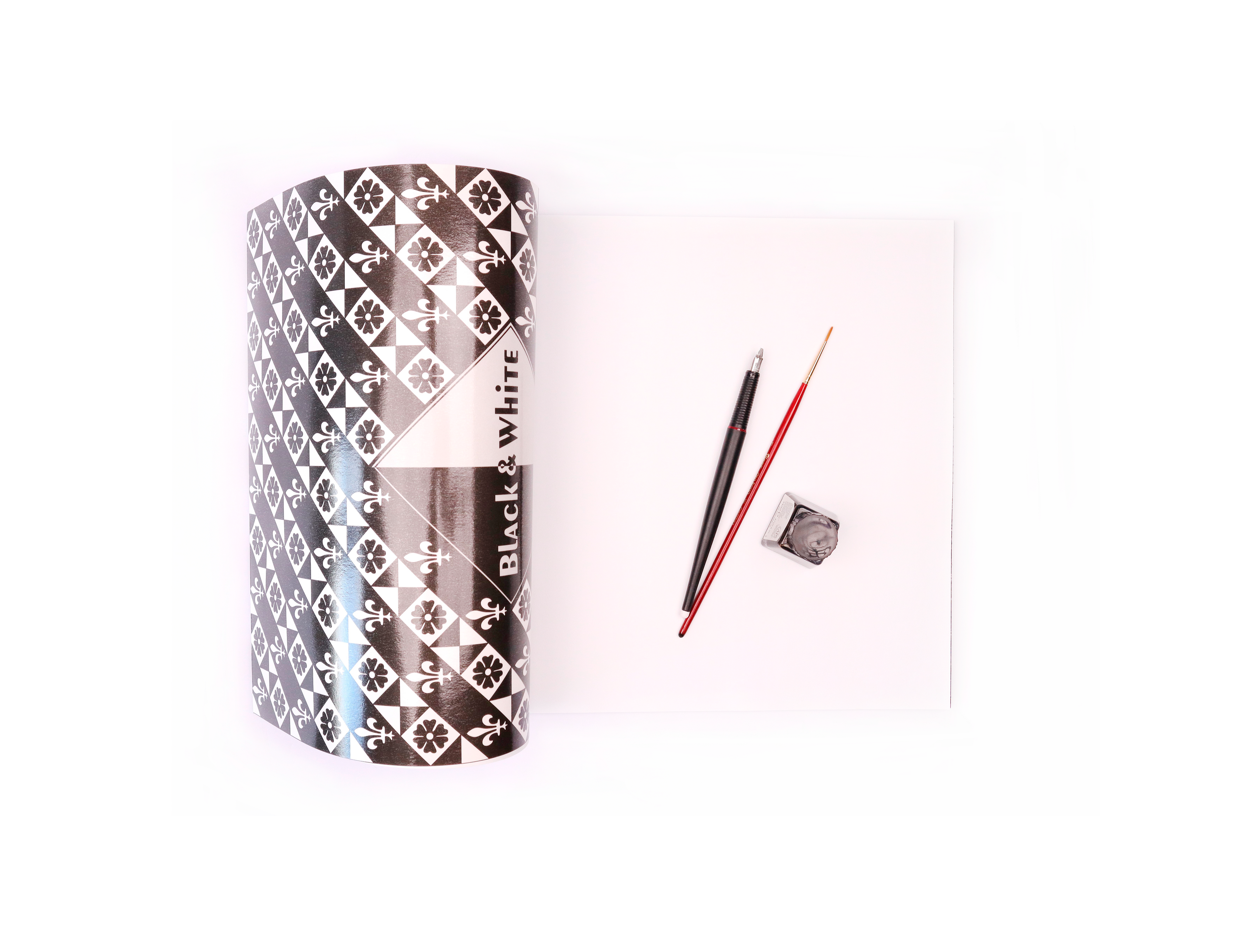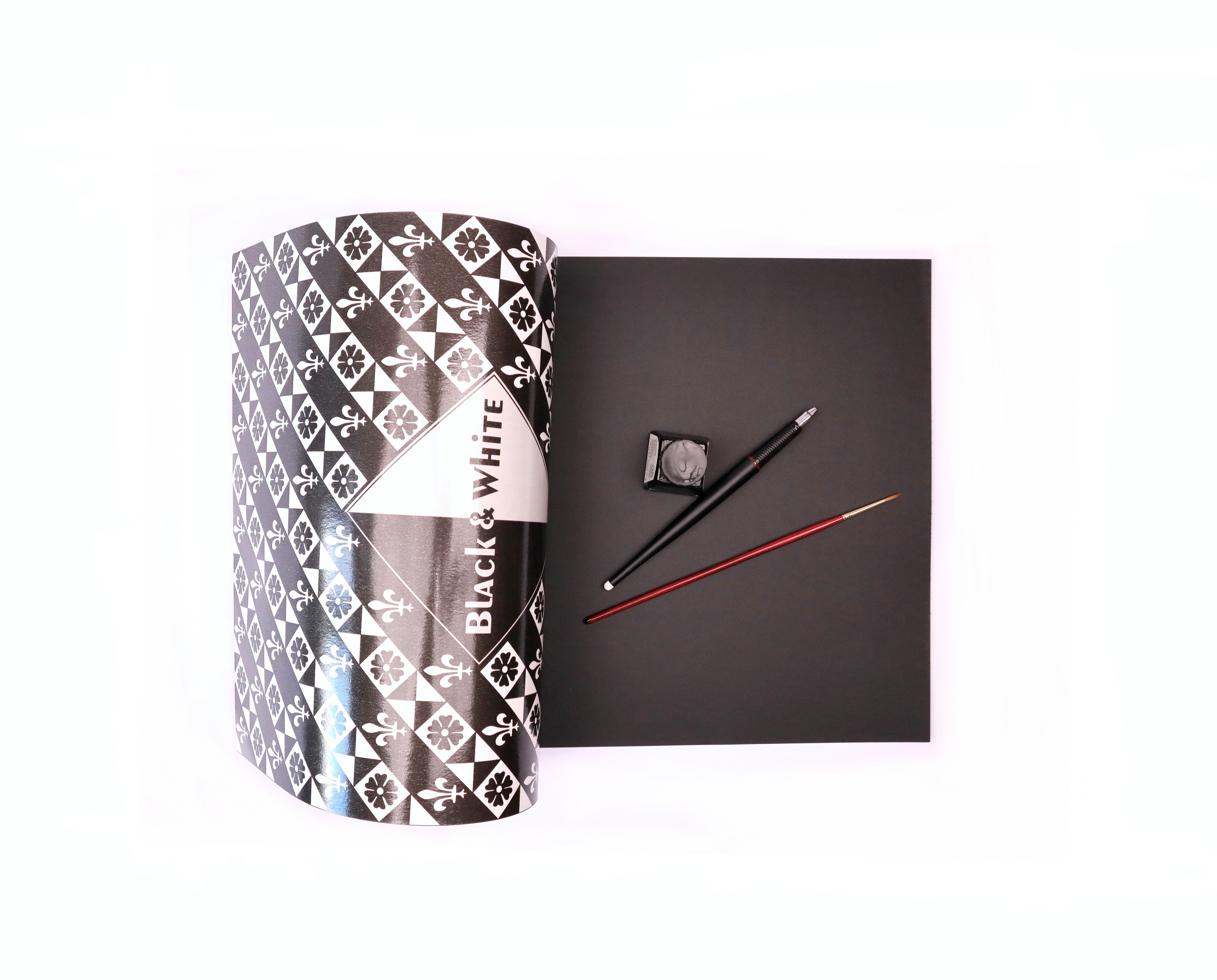 Планшет для эскизов и зарисовок из 15 листов черной и 15 листов белой бумаги.
