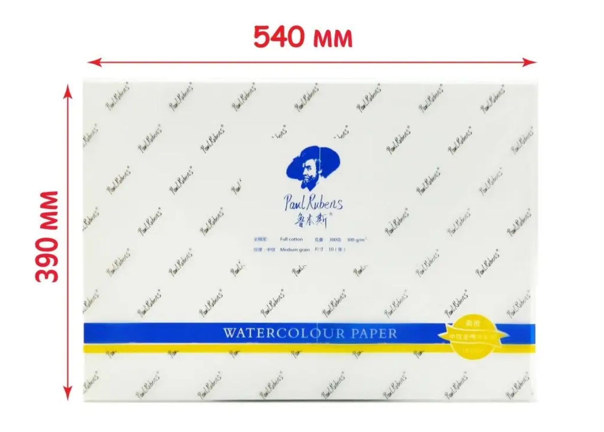 Бумага для акварели Paul Rubens, 390х540мм - профессиональная бумага для акварели плотностью 300 гр/м2, фактура среднезернистая, 5 листов.