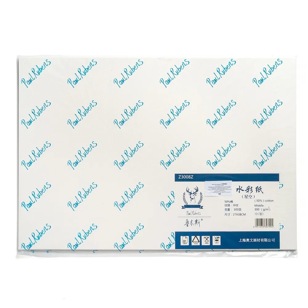 Бумага для акв.Paul Rubens, 300 г/м2, 270х380мм, хлопок 50%, среднезернистая \ Cold pressed, 10л sel