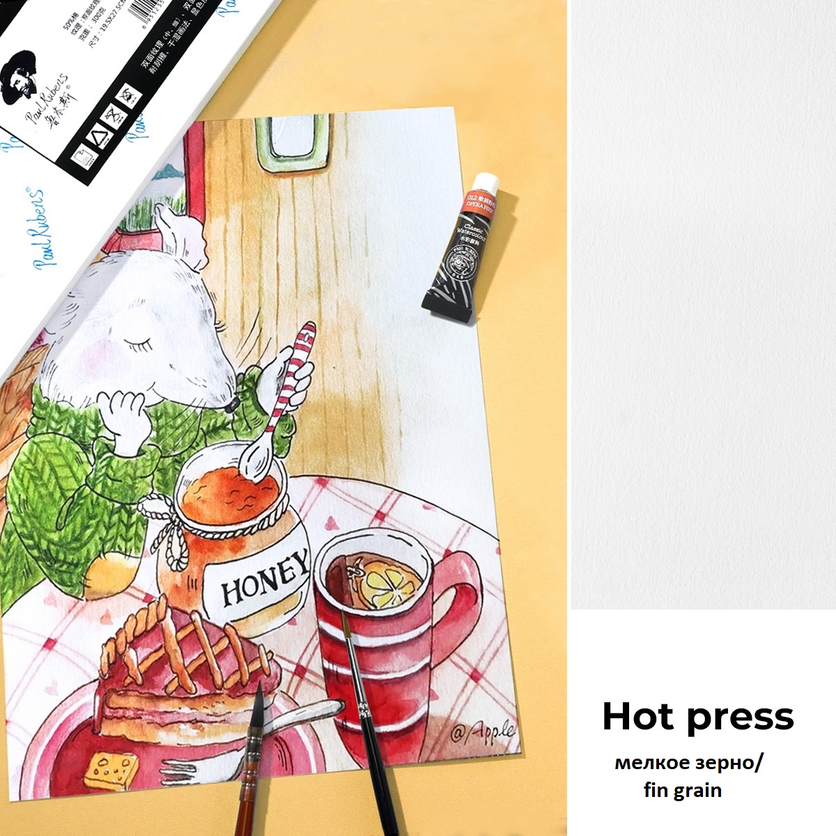 Плотная профессиональная бумага для акварели, изготовленная методом горячего прессования, предназначена в первую очередь для акварели, однако на нее отлично лягут и другие виды красок: акрил, гуашь, темпера, тушь.