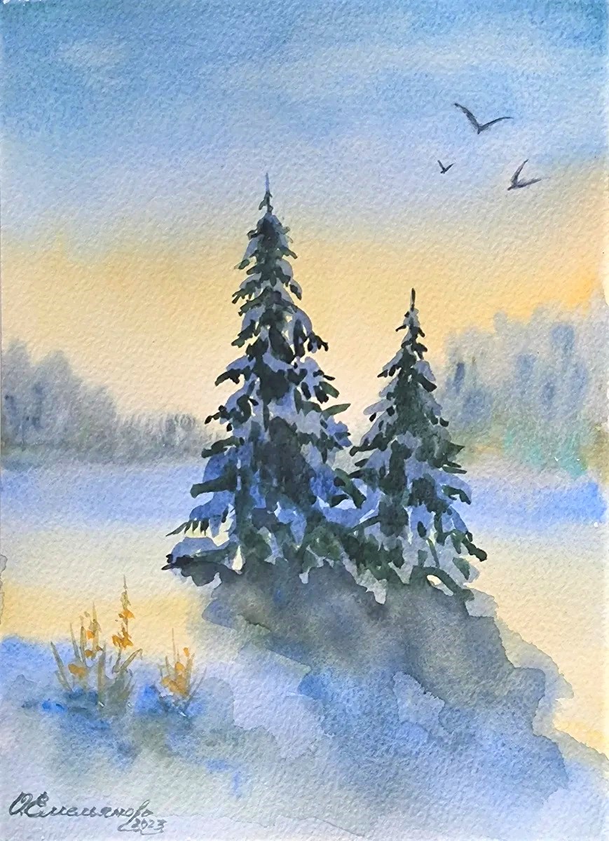 Бумага хорошо держит воду, не деформируется. Акварель, в свою очередь, мягко ложится на поверхность и легко распределяется по ней.