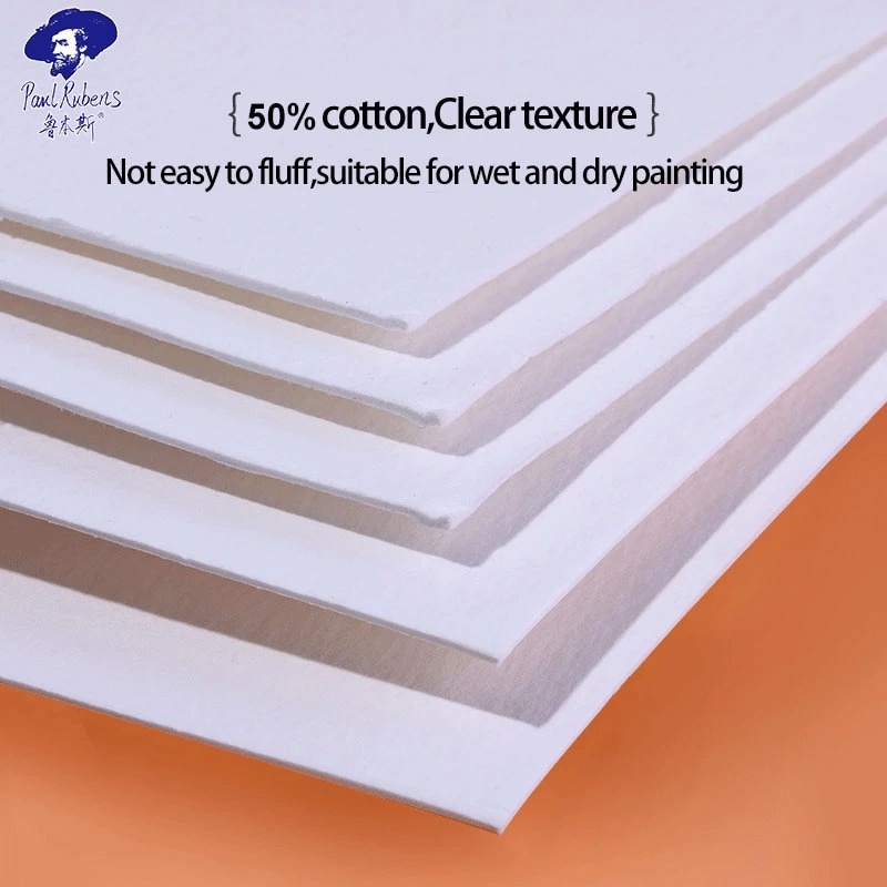 Бумага произведена с добавлением хлопка (50%) обладает среднезернистой фактурой и естественным белым цветом.