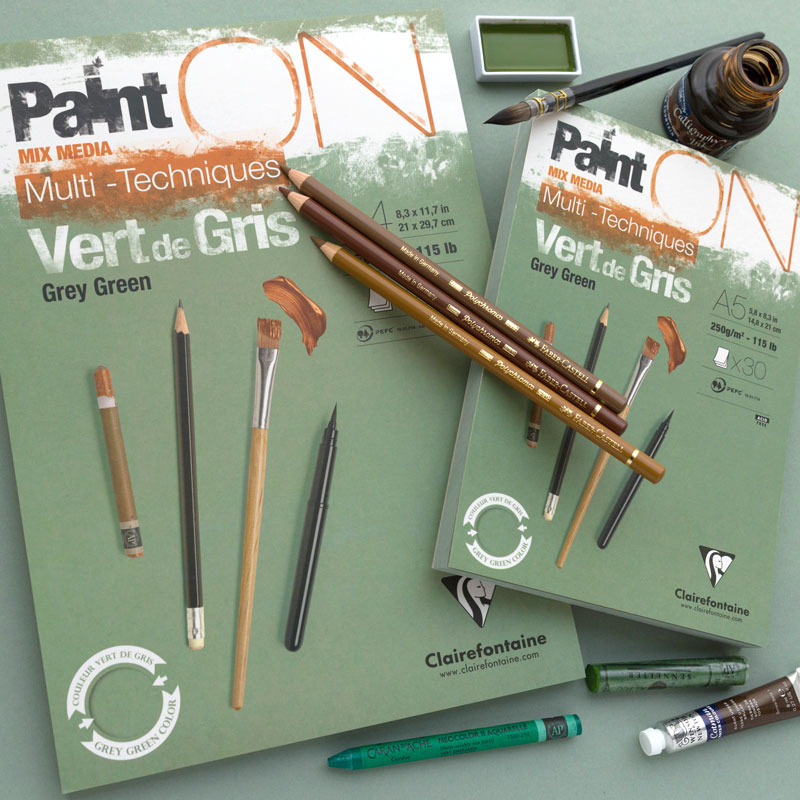 Склейка для смешанных техник "Paint'ON Grey Green" 30л., А4, 250г/м2, серо-зеленая sela