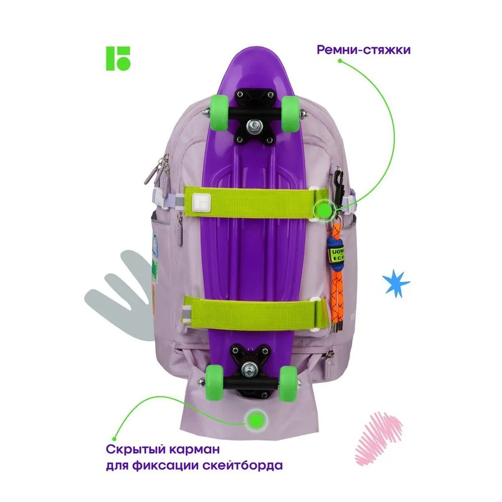 Городской рюкзак серии Street Style – стильный, лаконичный и функциональный. В модели предусмотрены крепления для пенни борда или скейтборда. Кроме того, яркие велкроленты являются трендовым элементом дизайна.