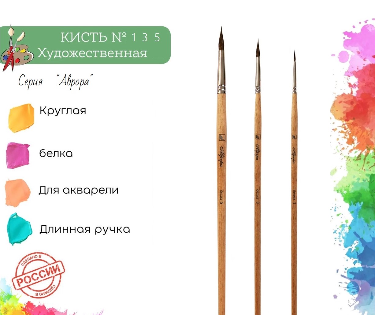 Состав набора: Кисти белка серии "Аврора" круглые № 1,3,5