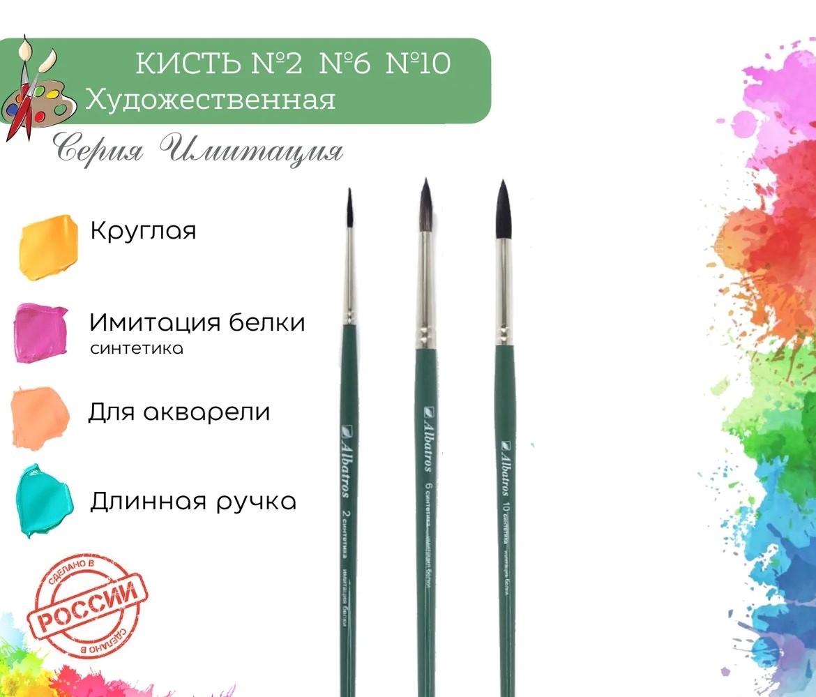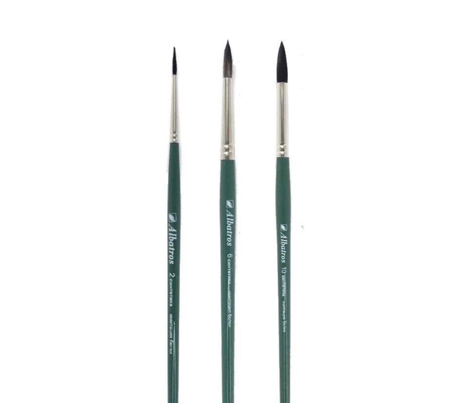 Набор кистей Альбатрос "Имитация" белка, круглая № 2, №6, №10, 3шт