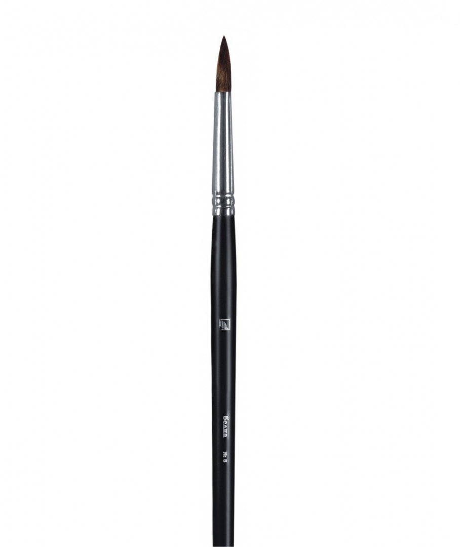 Кисти «Мастер» из волоса белки мягкая, тонкая и эластичная, мазки получаются сочными и яркими. Обойма цельнотянутая алюминиевая. Короткая деревянная ручка покрыта черной эмалью. Кисть из натуральной белки при намокании собирается в один плотный пучок, что подходит для кропотливой работы. Пучок кисти имеет круглую форму с заостренным кончиком, прекрасно удерживает воду и отдает пигмент.