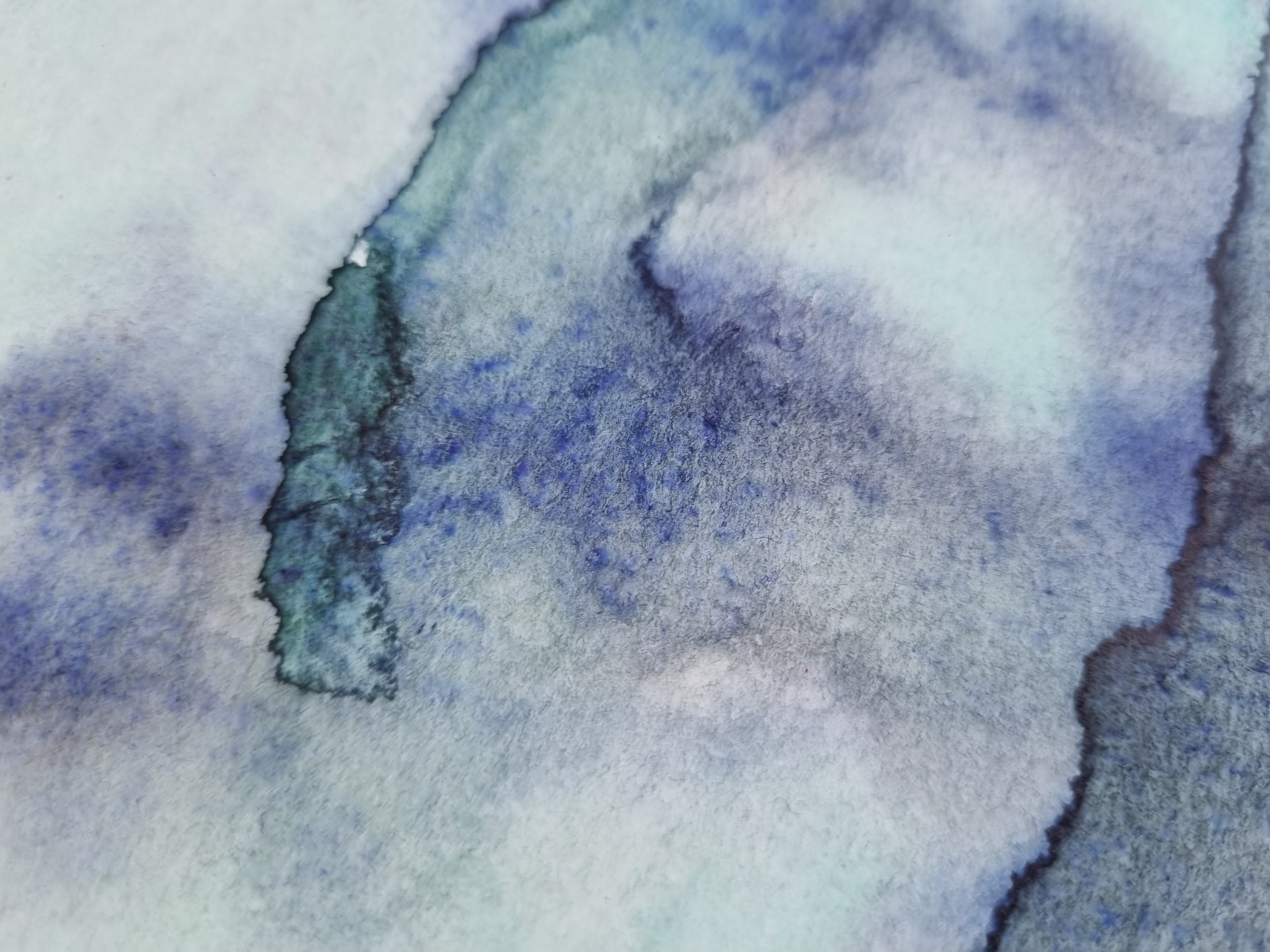 Грануляция: распадающийся цвет лучше класть с хорошим увлажнением, и учитывать, что краска проскальзывает по бумаге. Полученный эффект может показаться неравномерным, т.к. краска не имеет тенденции немедленного проникания в поры этой бумаги. «Тёмные участки» могут выглядеть комковатыми.