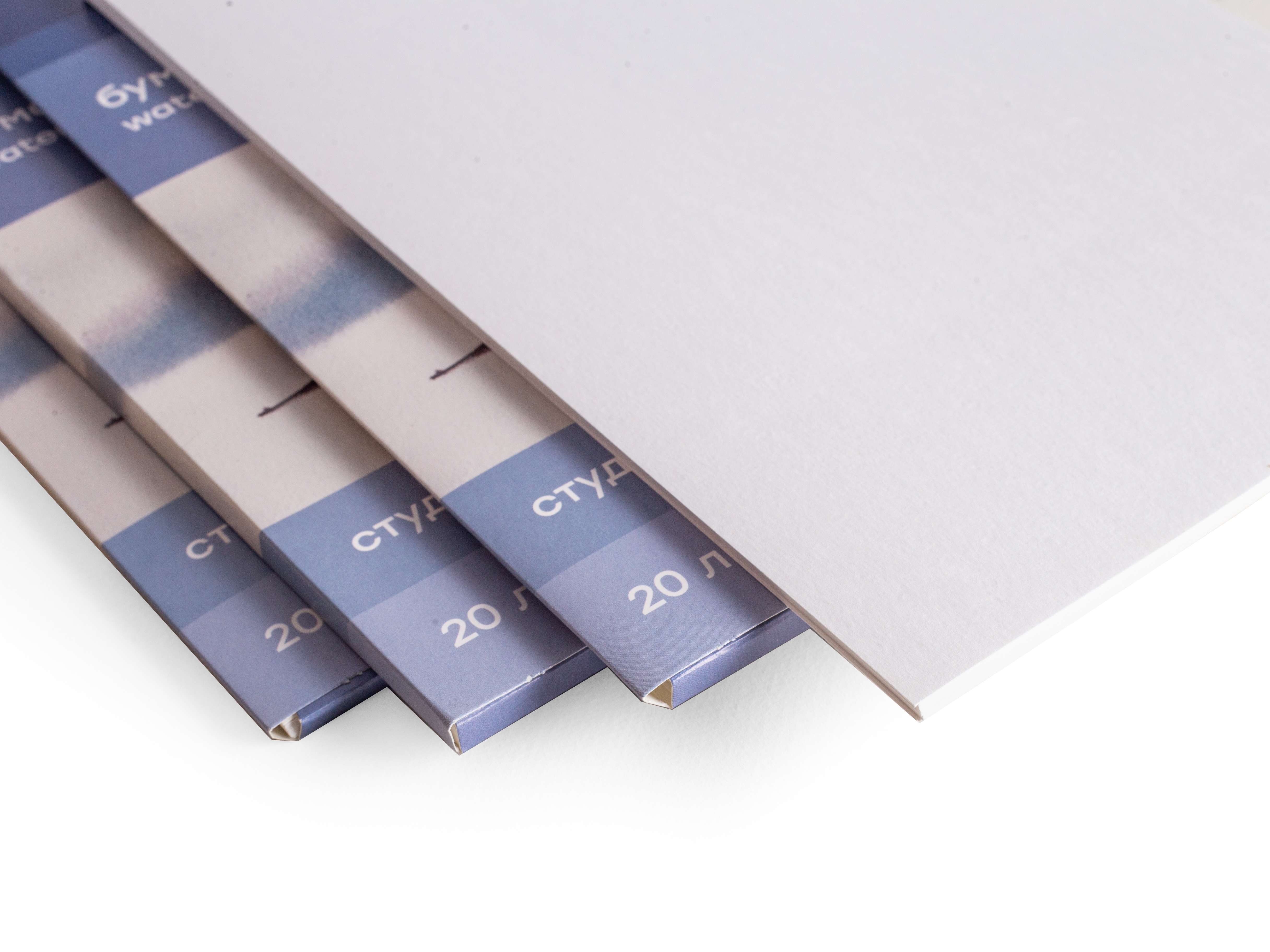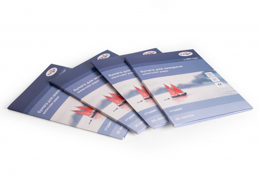 В папке «ГАММА» серии «Студия» используется бумага Гознак, подходящая для акварели. Листы изготовлены из 100% целлюлозы, плотностью 200г/м2.