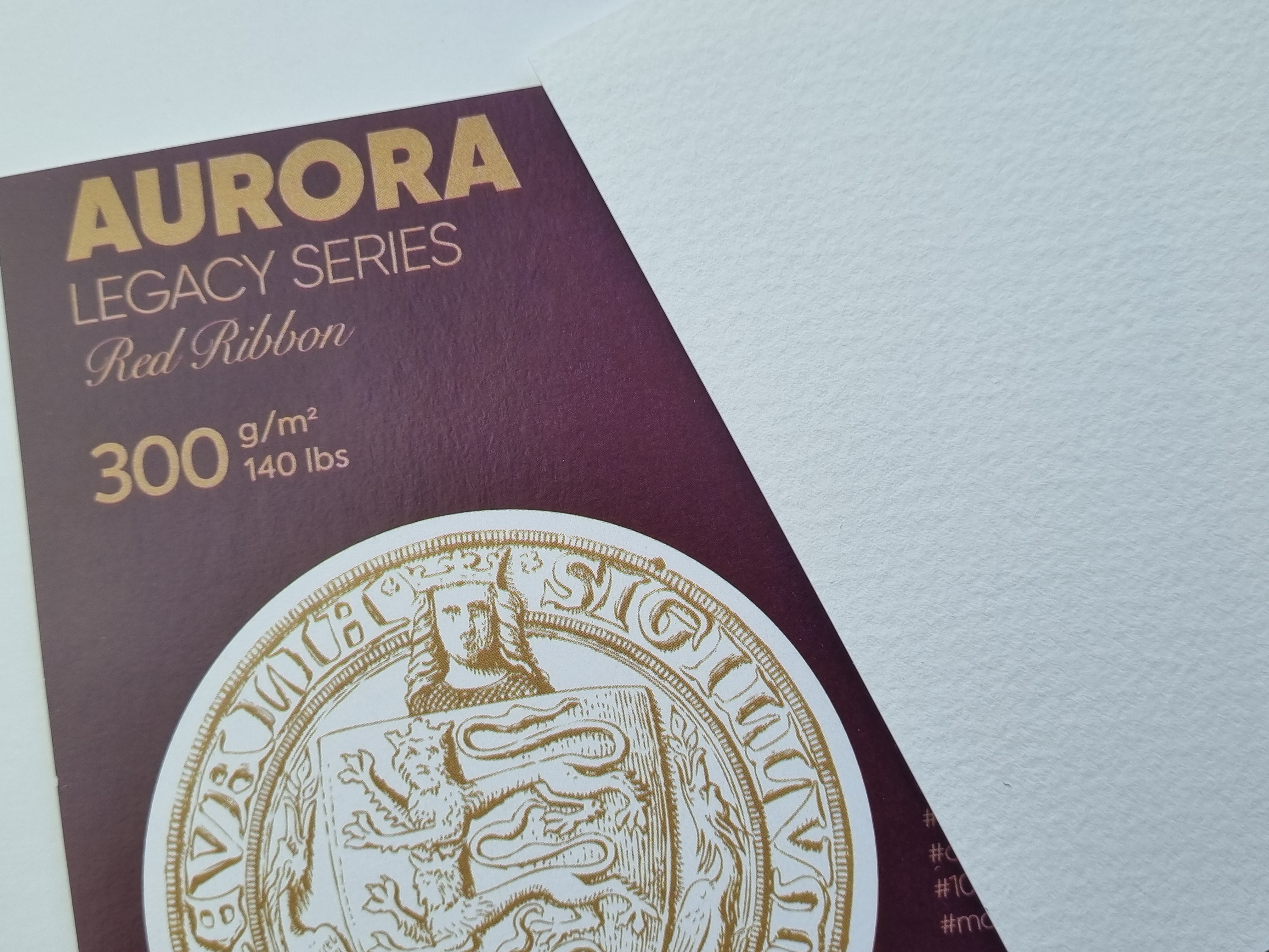 Aurora Red Ribbon — это акварельная бумага архивного качества, изготовленая из 100% хлопка.