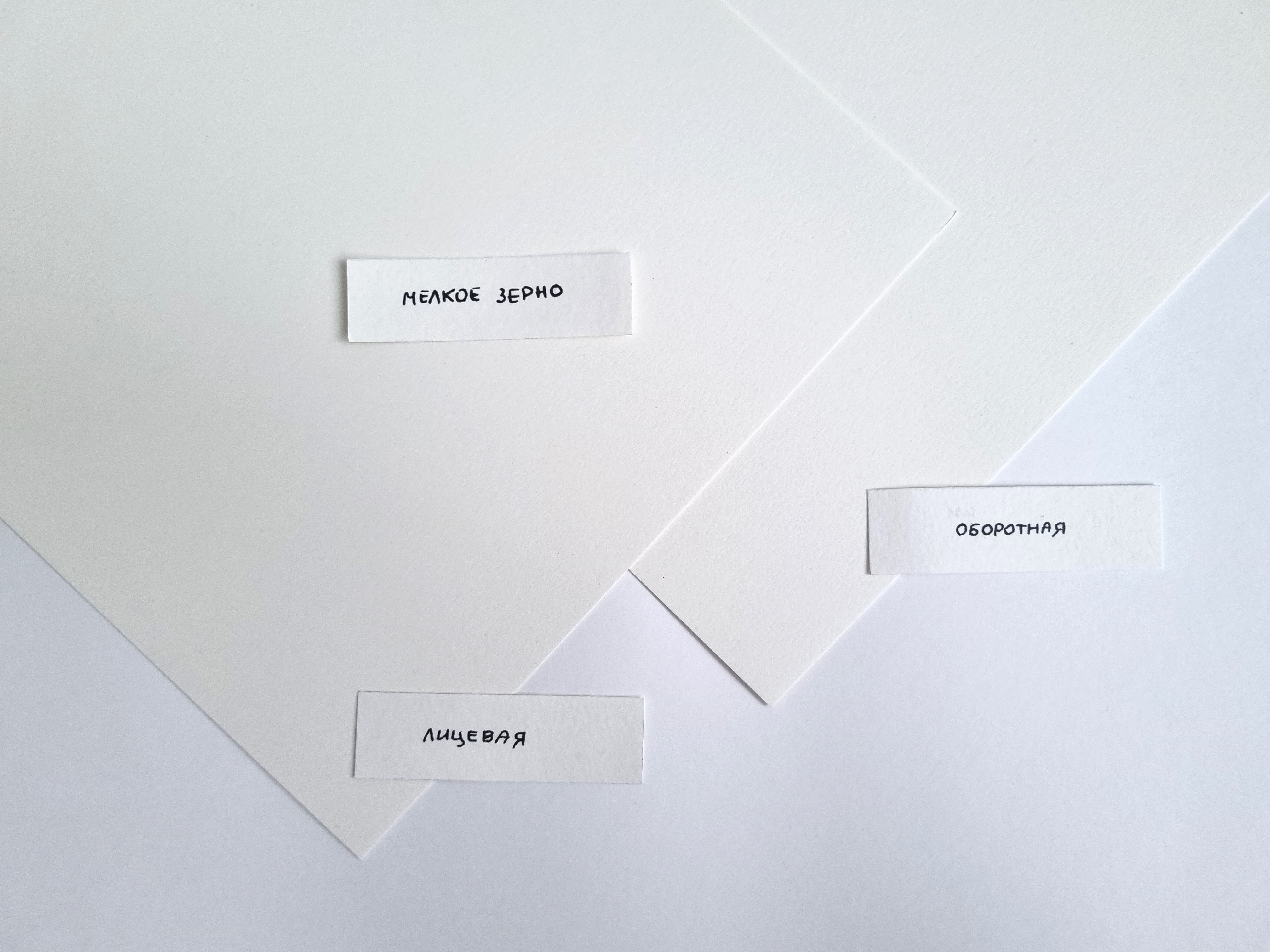 Фактура лицевой стороны листа имеет чуть более выраженную структуру, обратная сторона – более гладкая, это позволяет применять разные техники рисования.