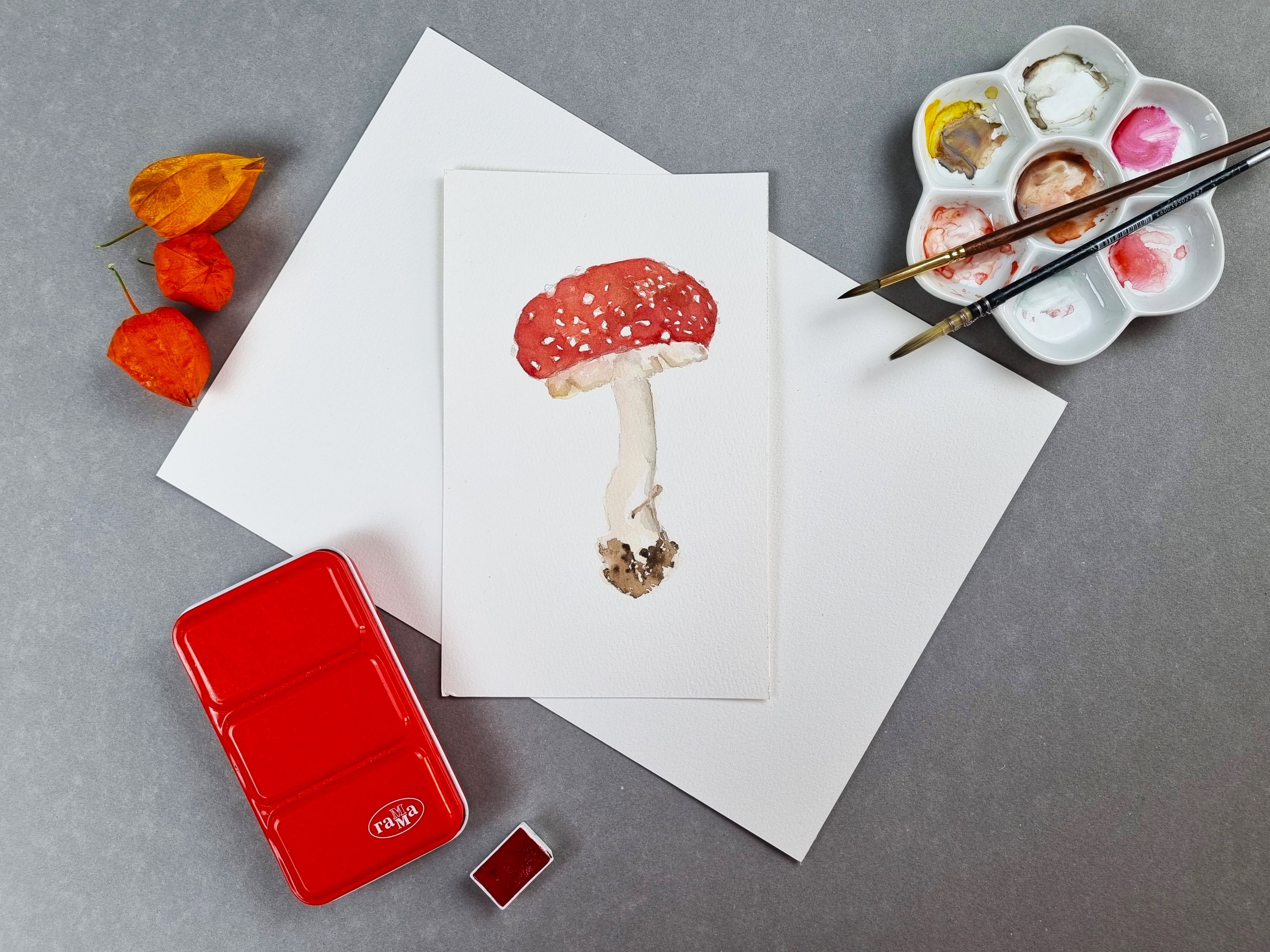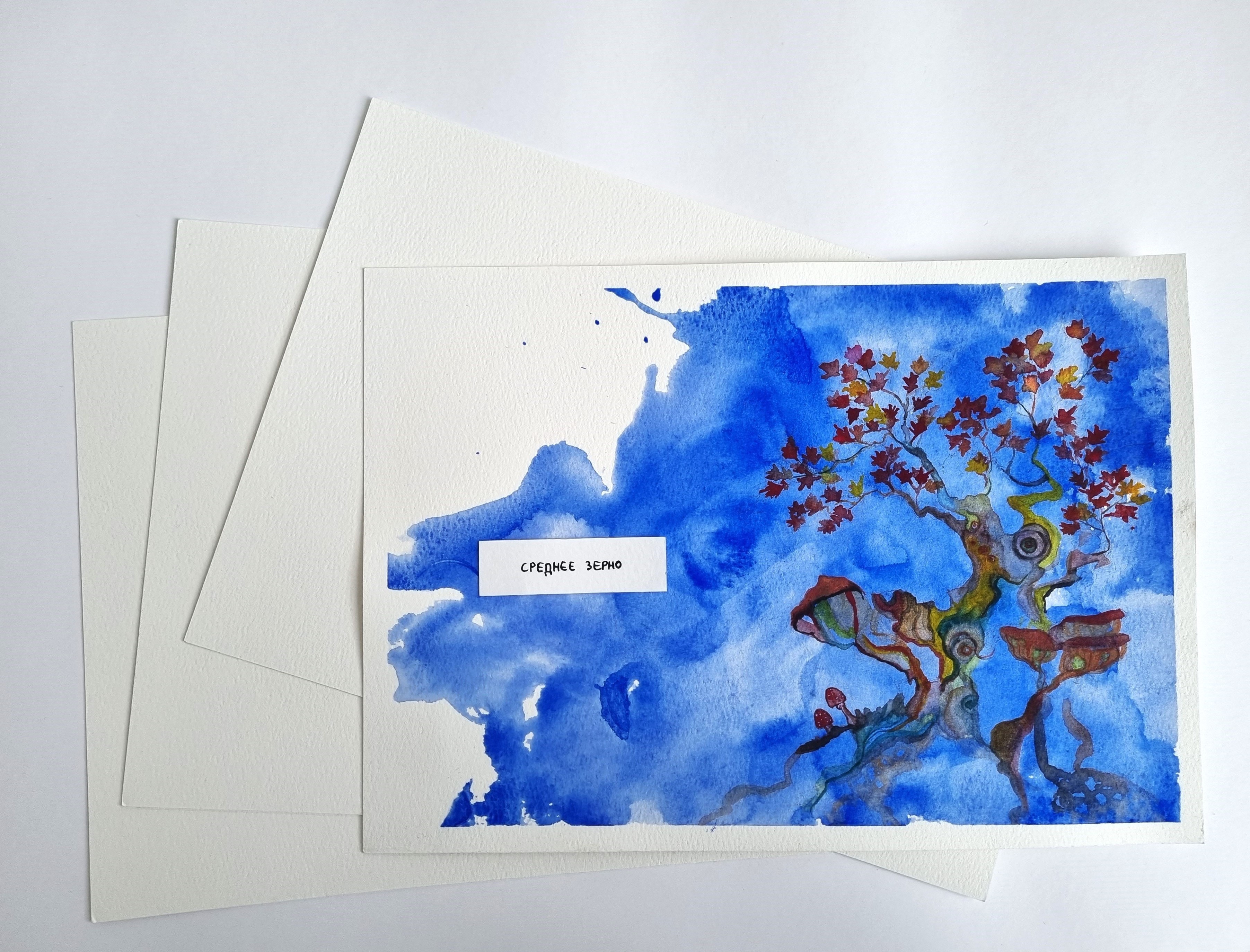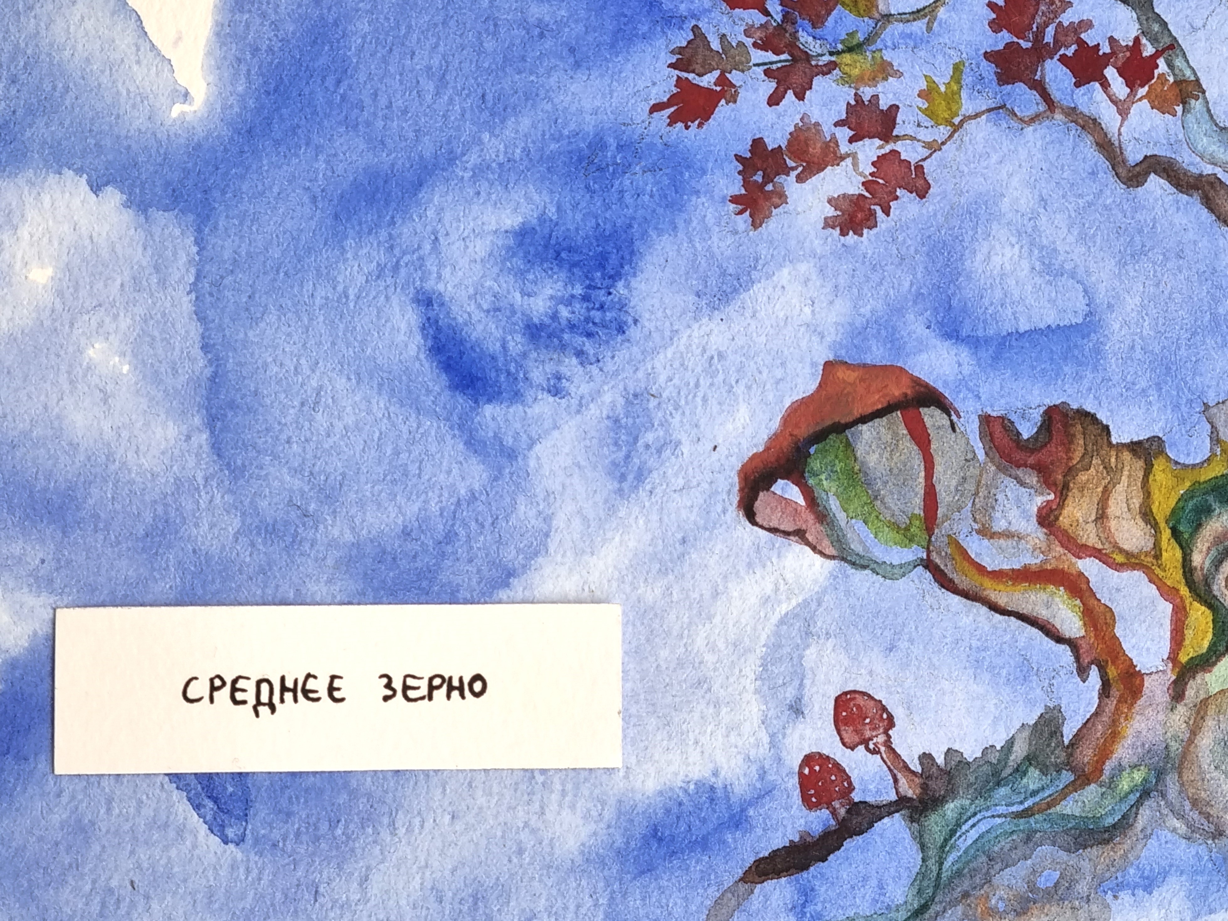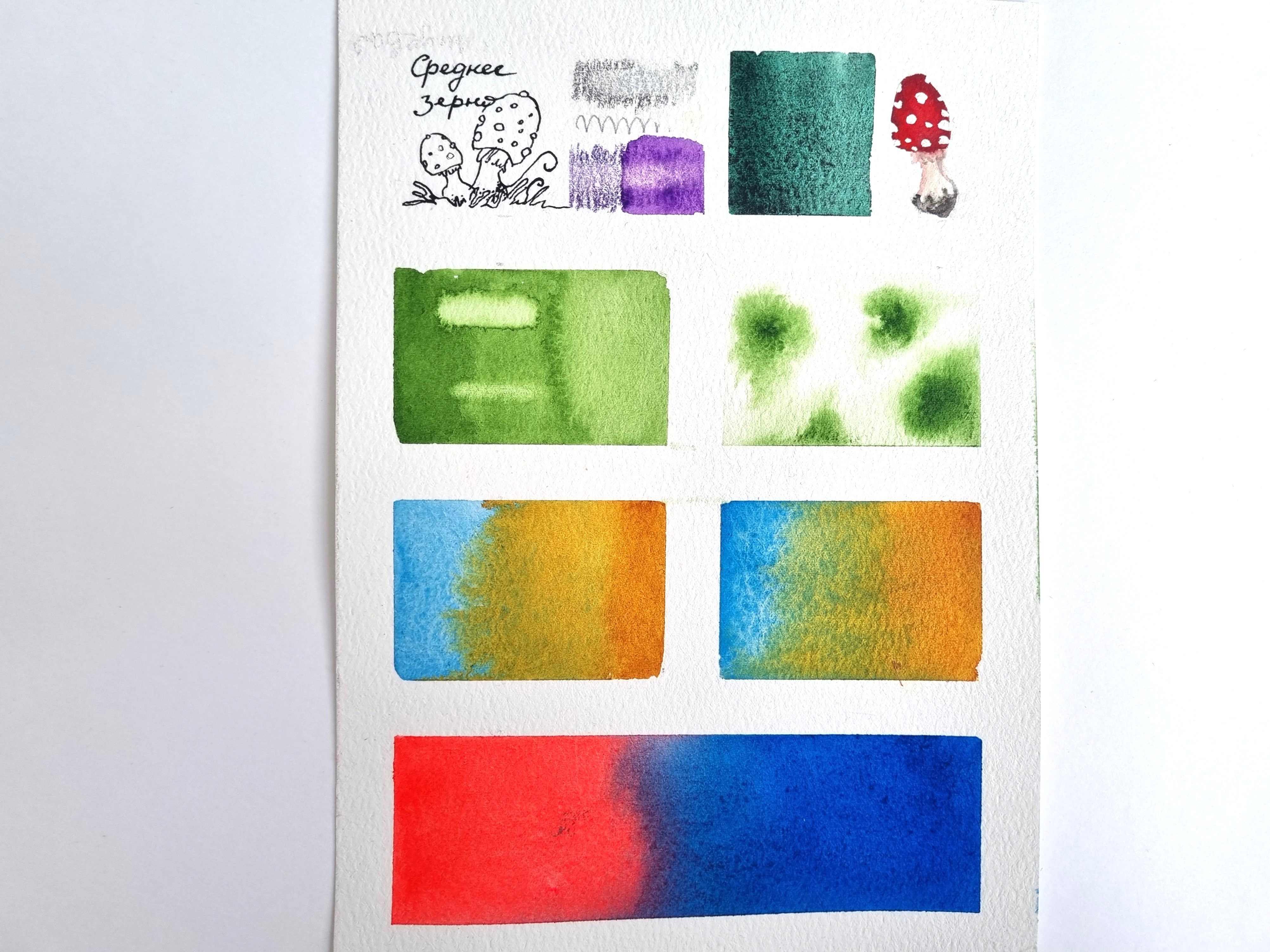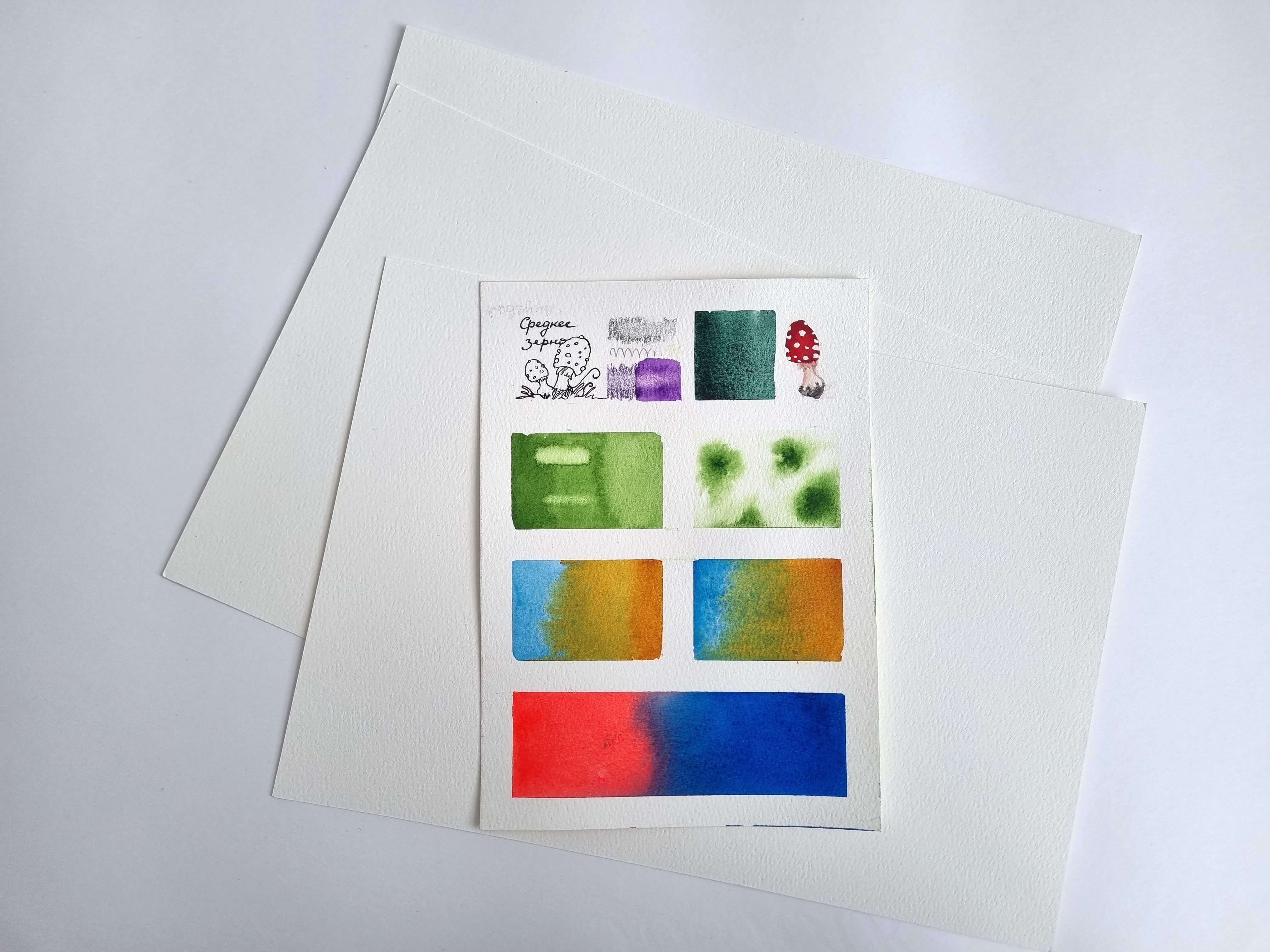 При работе мокрым-по-мокрому лучше применить фиксацию. При смачивании бумага приподнимается. При смешении краска прекрасно контролируется и выдаёт плавный градиент.
