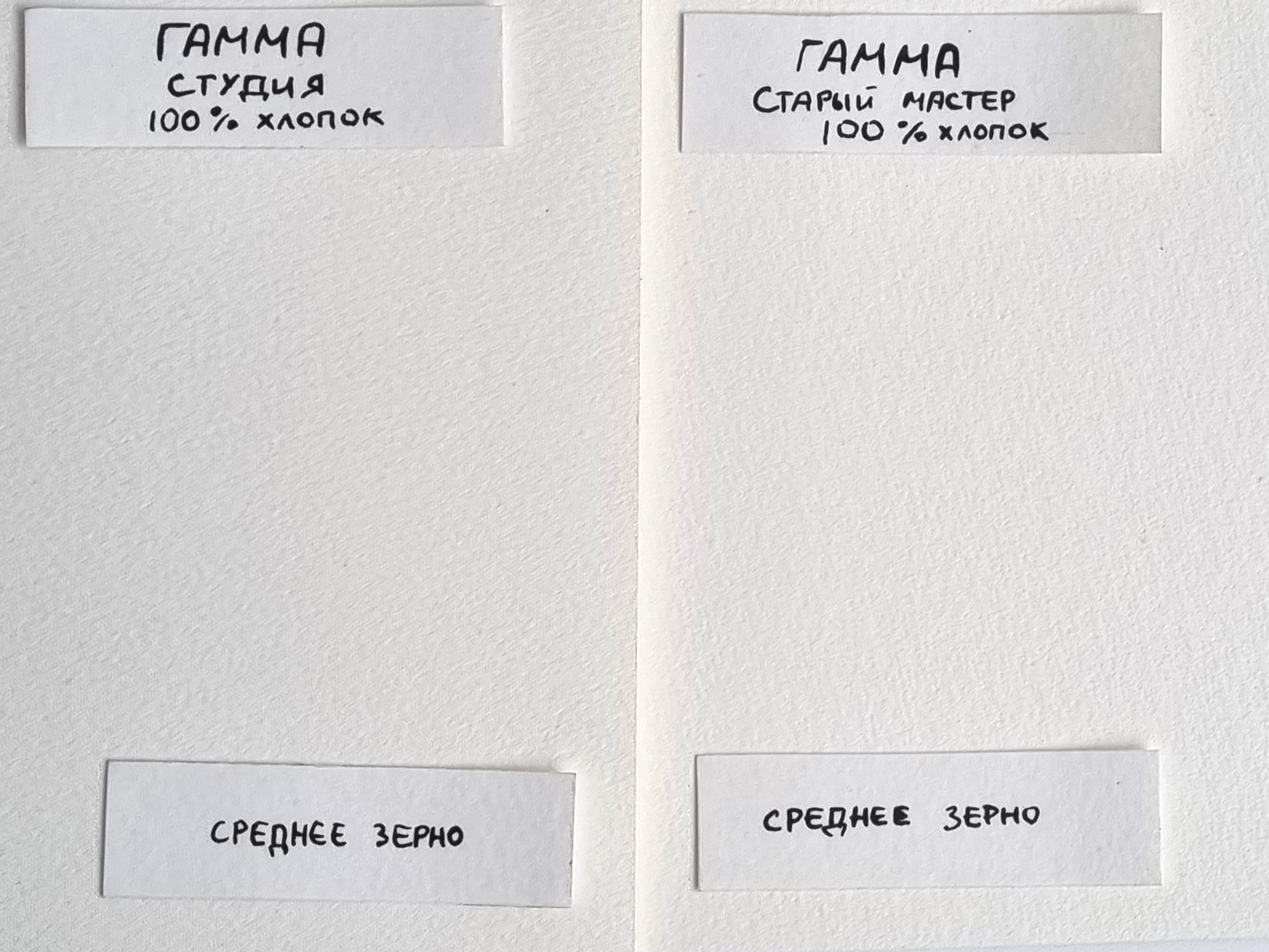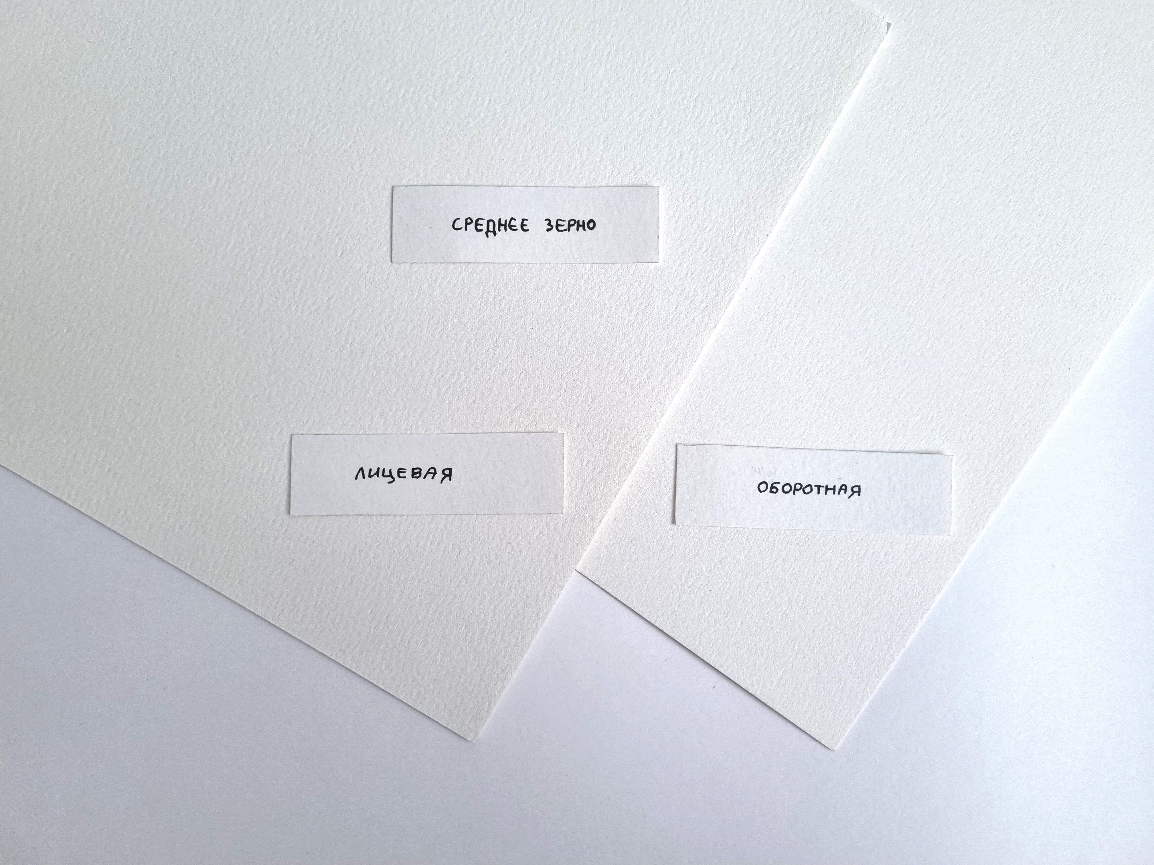 Фактура лицевой стороны листа имеет более выраженную структуру, обратная сторона – более гладкая, это позволяет применять разные техники рисования.