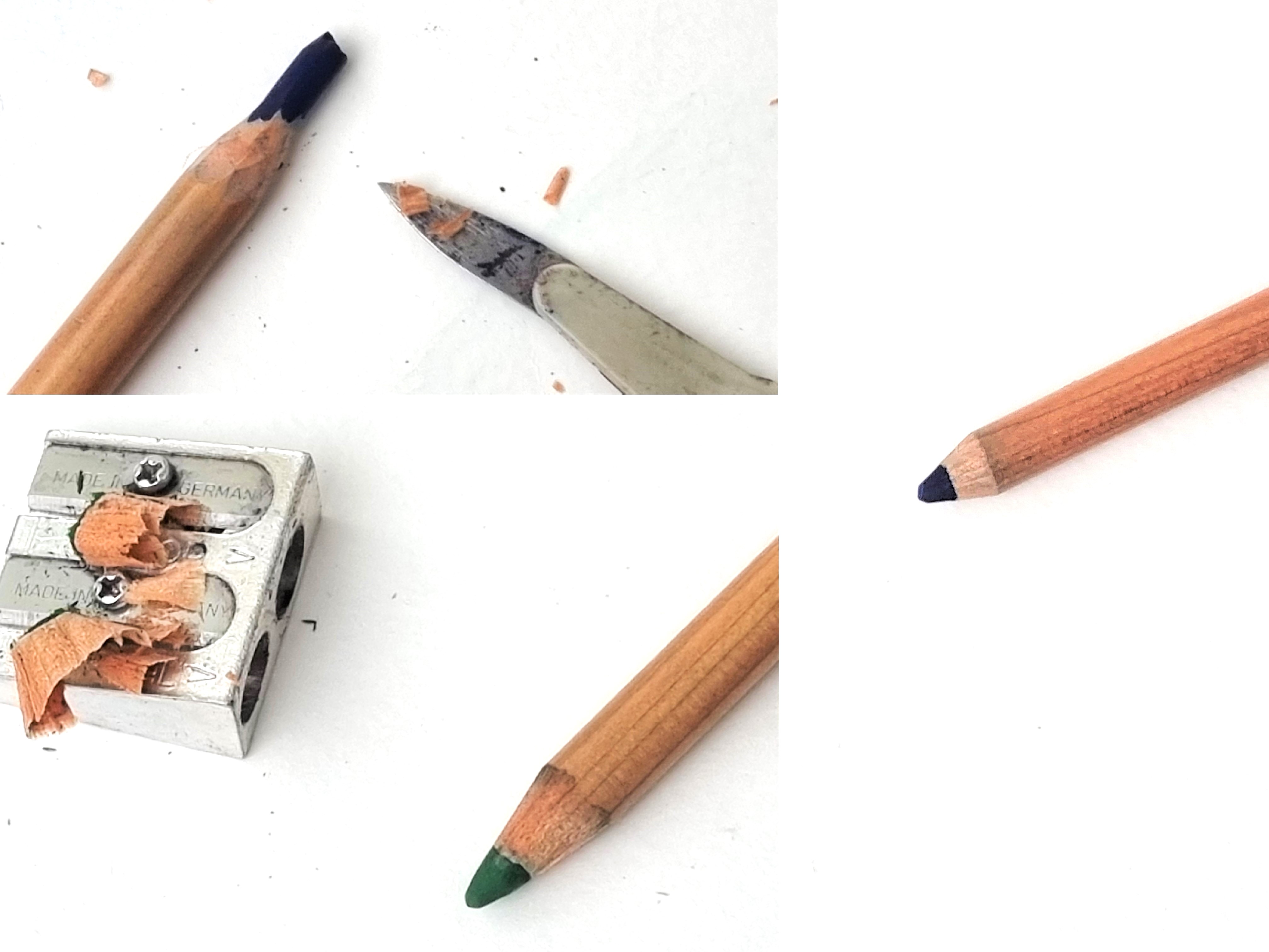 В результате заточки не происходит ломки грифеля. Карандаши можно точить обычной точилкой, срез дерева ровный, кончик - острый. Прибегать к резаку стоит в случае экономии грифеля. Там, где у других пастельных карандашей грифель отламывается в точилке и нормально точится только само дерево, у Pitt этого не происходит.