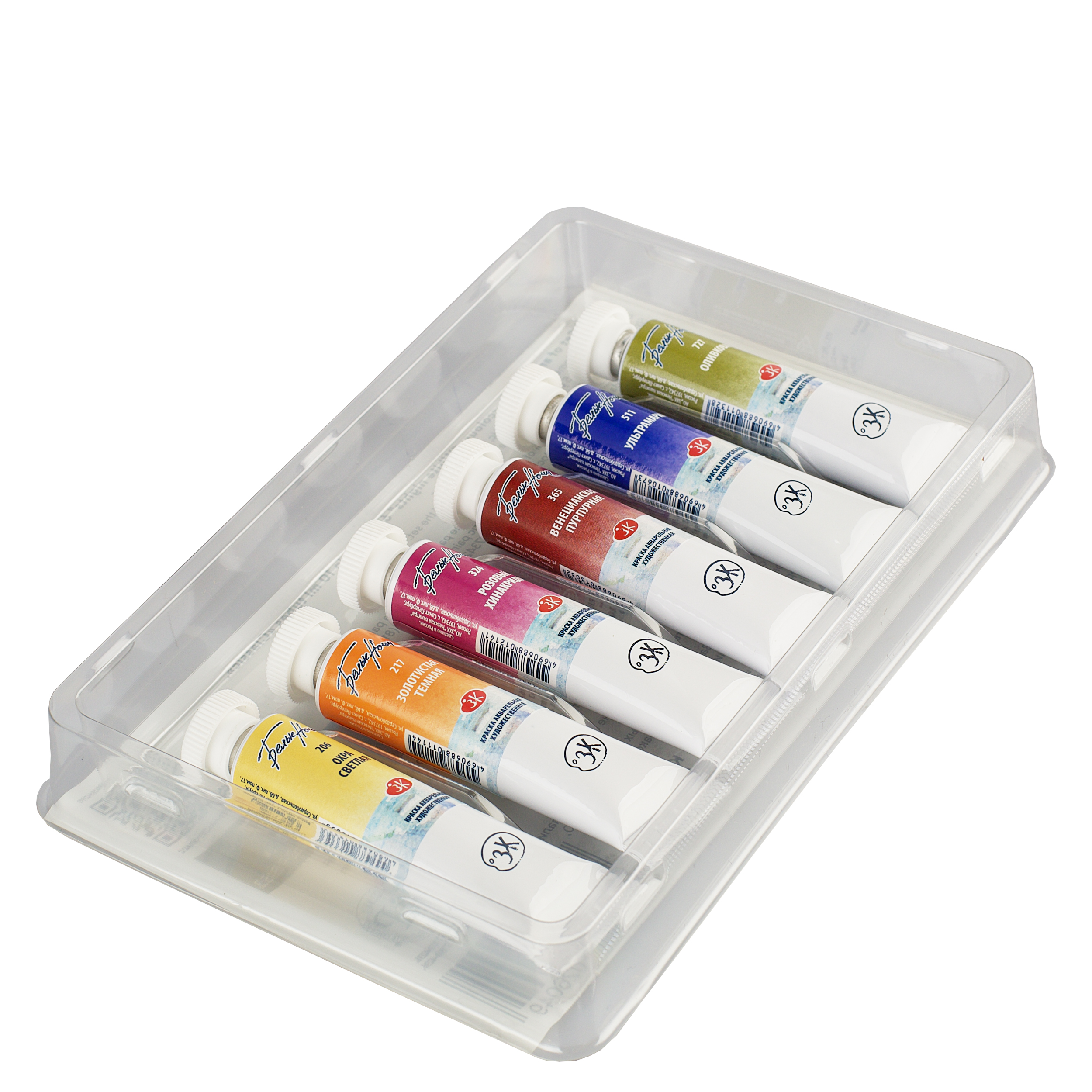 Набор акварельных художественных красок "Классика" "Белые Ночи" 6 туб 10 мл в пластиковом коррексе с европодвесом.