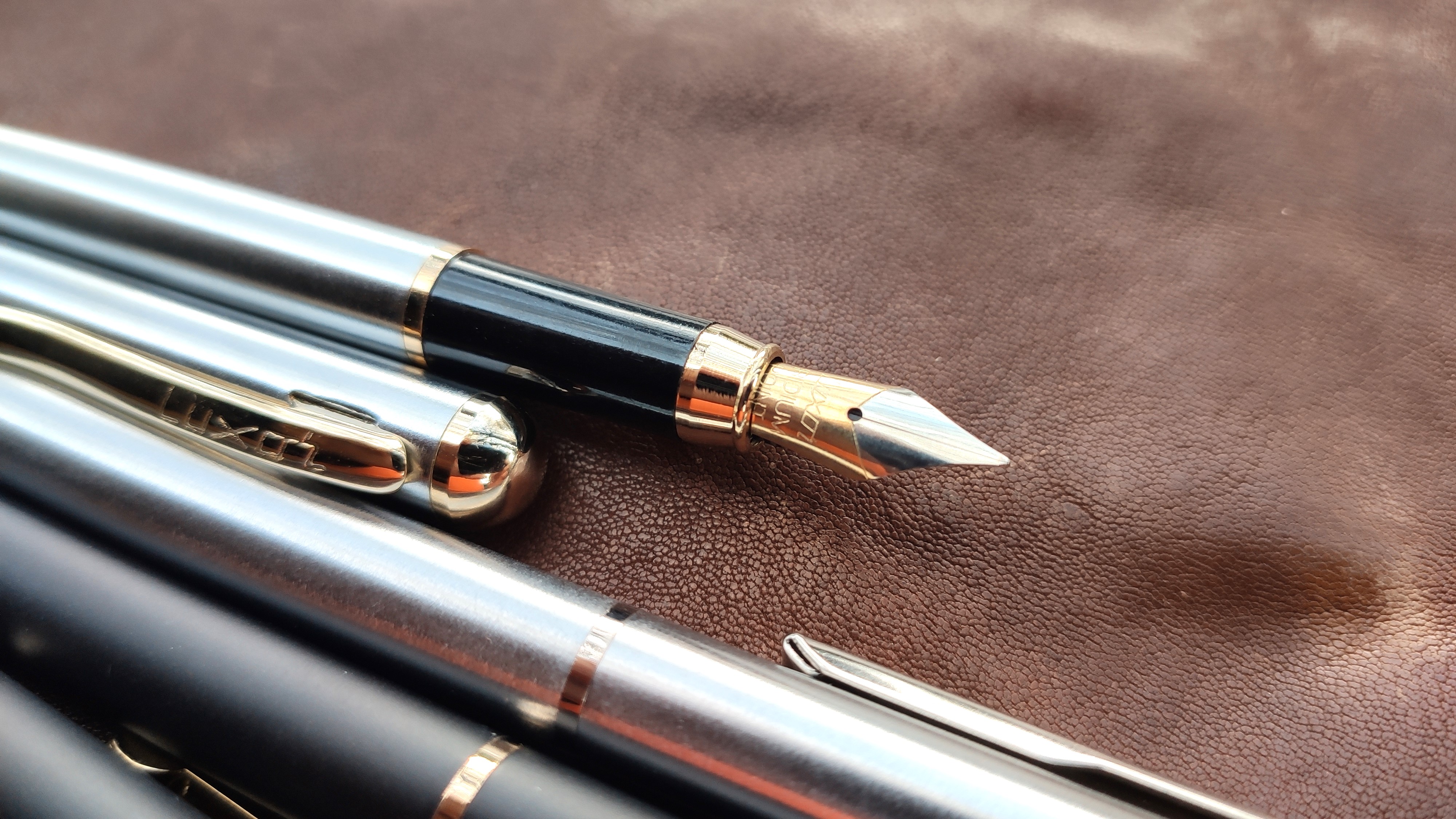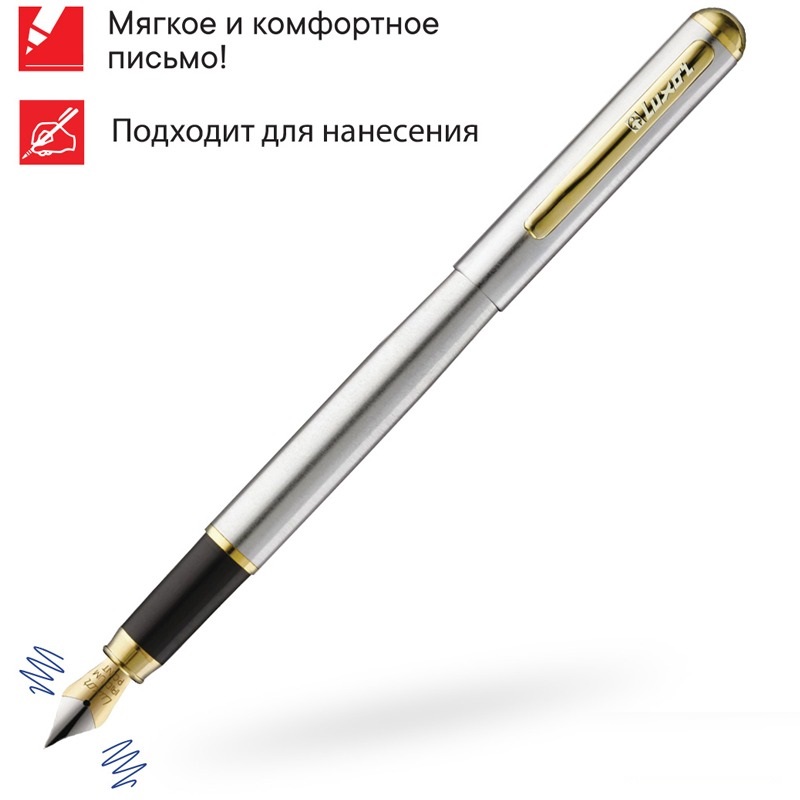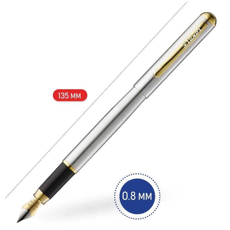 Перо выполнено из нержавеющей стали, толщина пишущего элемента составляет 0,8мм.