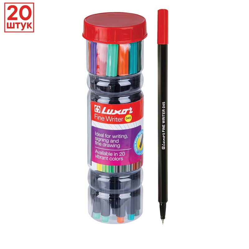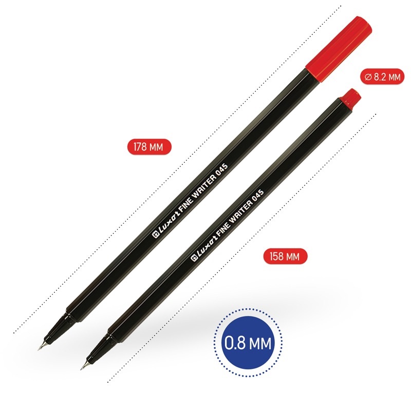 Набор капиллярных ручек Luxor Fine Writer – линер, тонко пишущий фломастер и чертёжный инструмент одновременно. Диаметр пишущего узла: 0,8 мм.