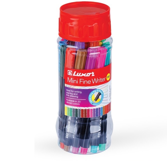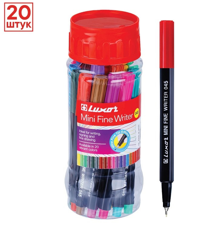 Набор капиллярных ручек Luxor "Mini Fine Writer 045" 20цв., 0,8мм, пластиковая банка