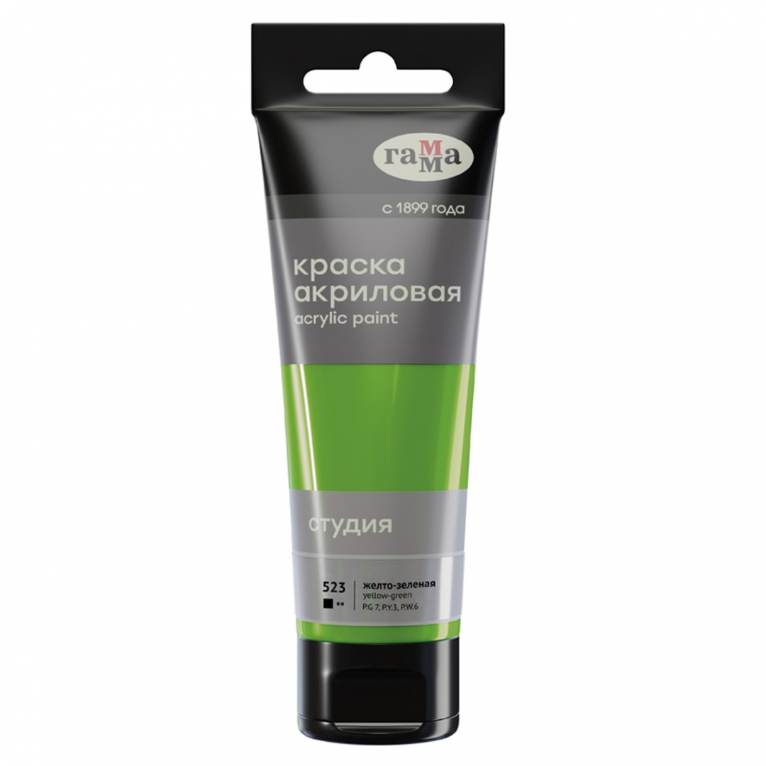 Краска акриловая художественная Гамма "Студия", 75мл, пластиковая туба, желто-зеленая