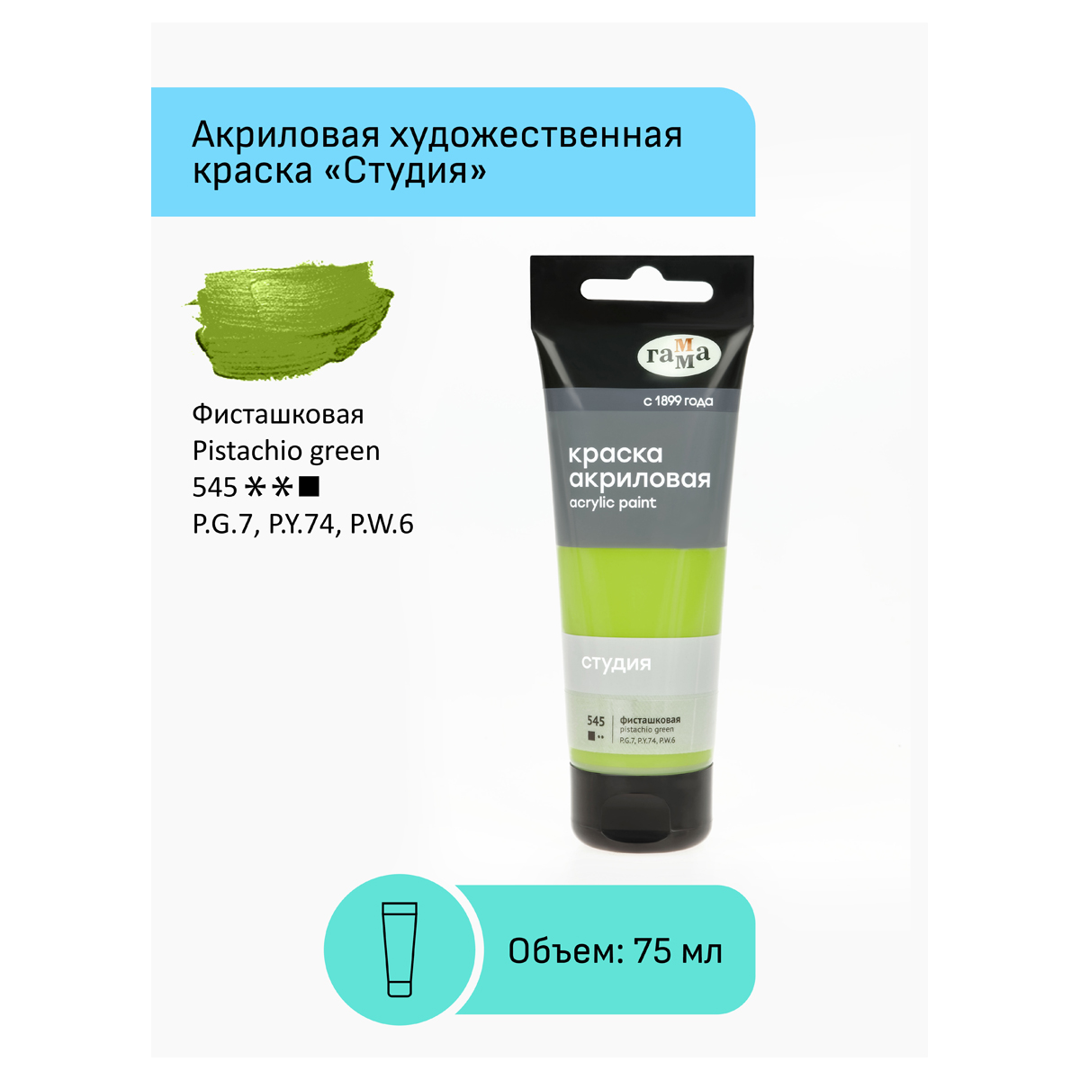 Краска акриловая художественная Гамма "Студия", 75мл, пластиковая туба, фисташковая