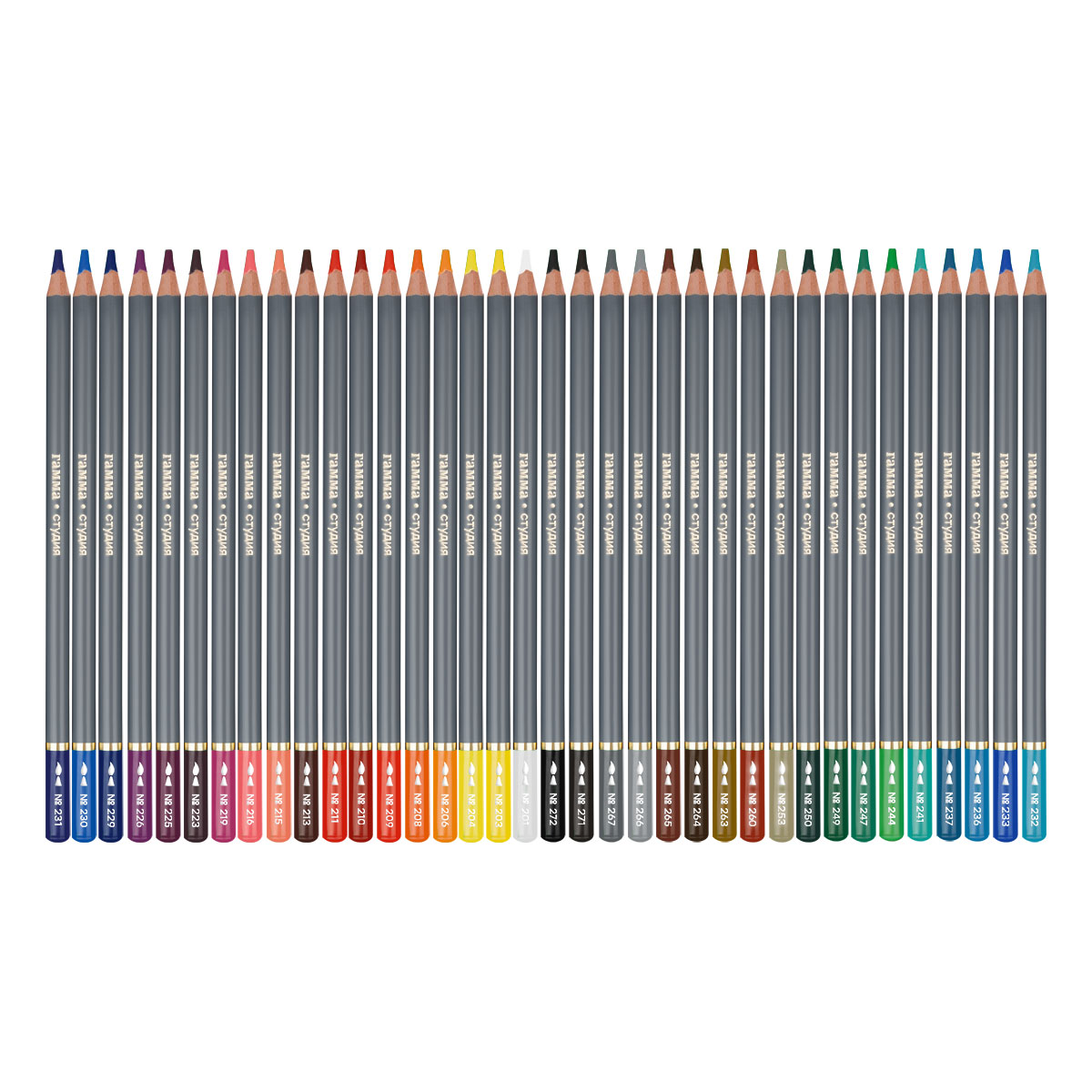 В наборе 36 ярких и насыщенных цветов. Диаметр грифеля – 3,8 мм. Карандаши легко растушёвываются, позволяют прорисовывать детали и достигать плавных акварельных переходов при размывании кистью. благодаря высококачественной технологии двойного проклеивания грифель не ломается при падении. Круглый корпус карандаша диаметром 7,8 мм изготовлен из липы специальной обработки, и его легко затачивать точилкой, ножом или наждаком. В комплекте – кисть «ГАММА» № 4 из синтетического волоса. Представлены в удобной упаковке из 100% перерабатываемого материала в креативном дизайне.