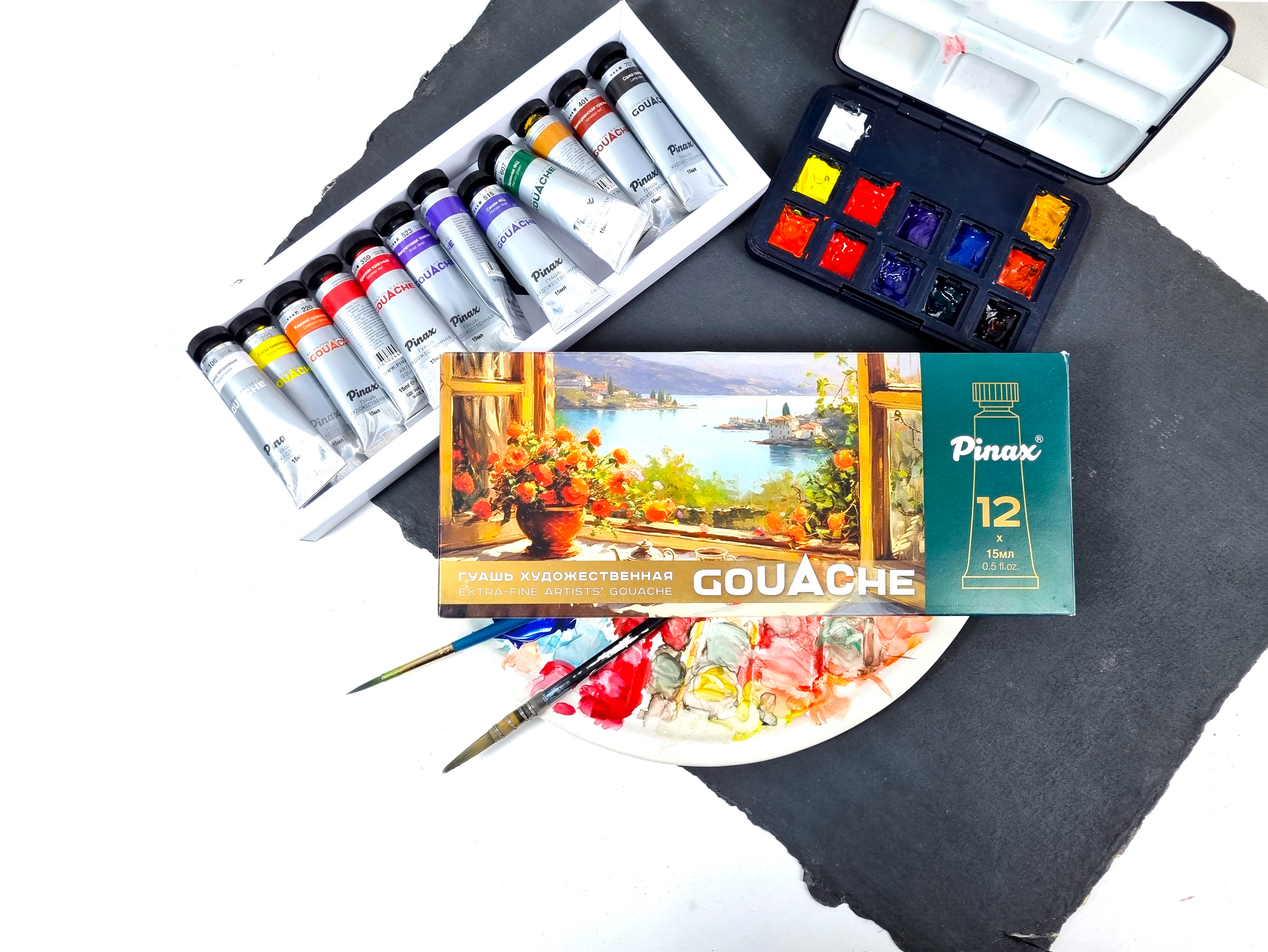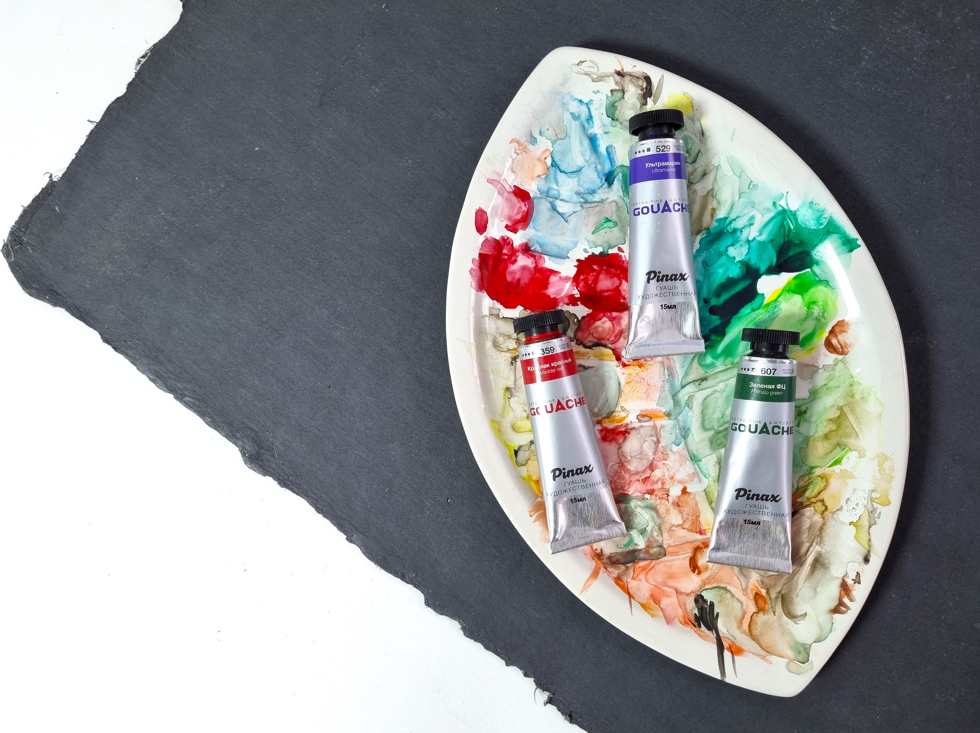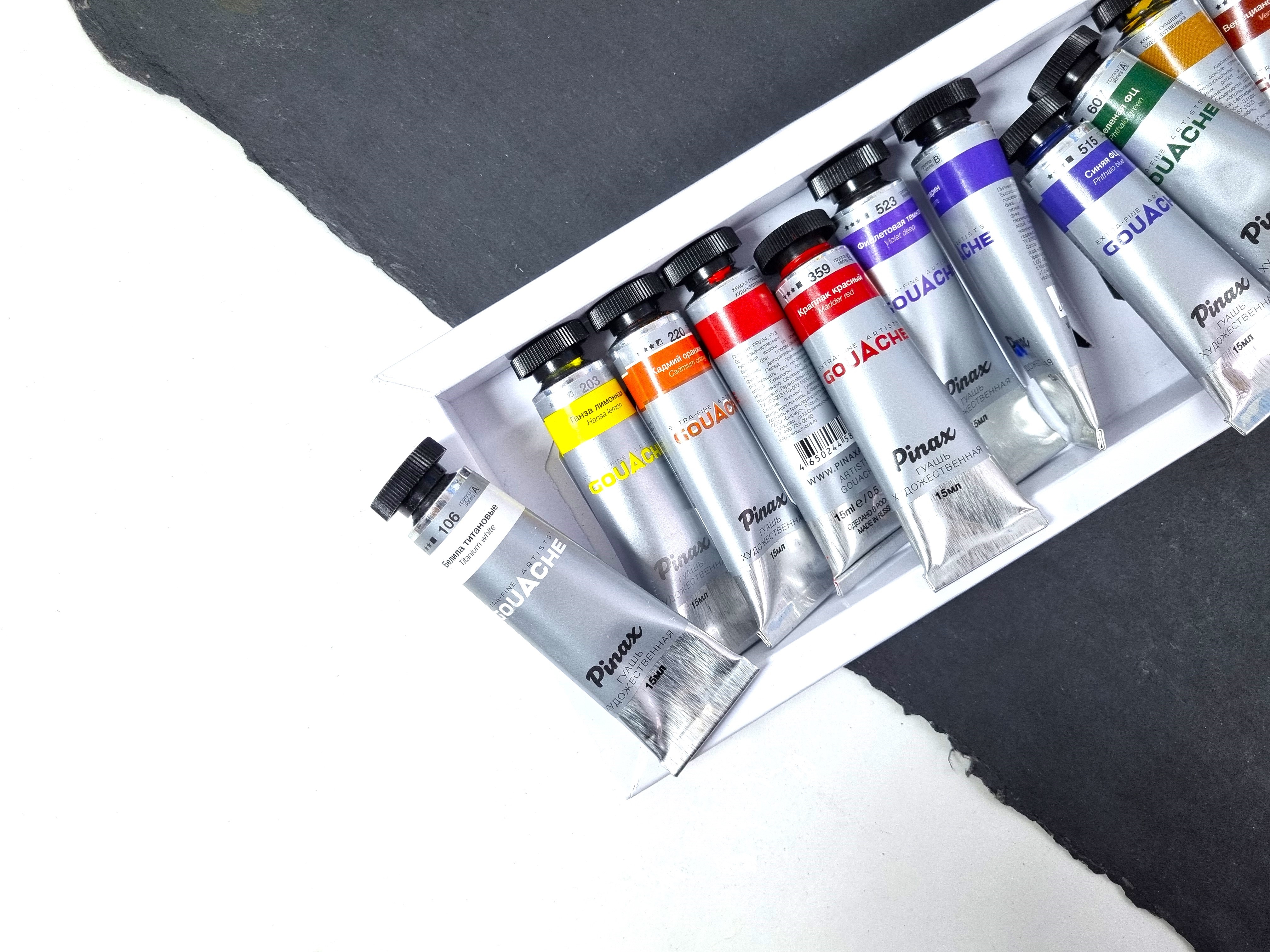 Высококачественная художественная гуашевая краска на основе гуммиароабика. Для профессиональных живописных, декоративных работ и графики. Все цвета отлично смешиваются между собой, позволяя создавать новые оттенки. После высыхания краска становится матовой. Перед применением, при необходимости, тщательно перемешать, развести водой.
