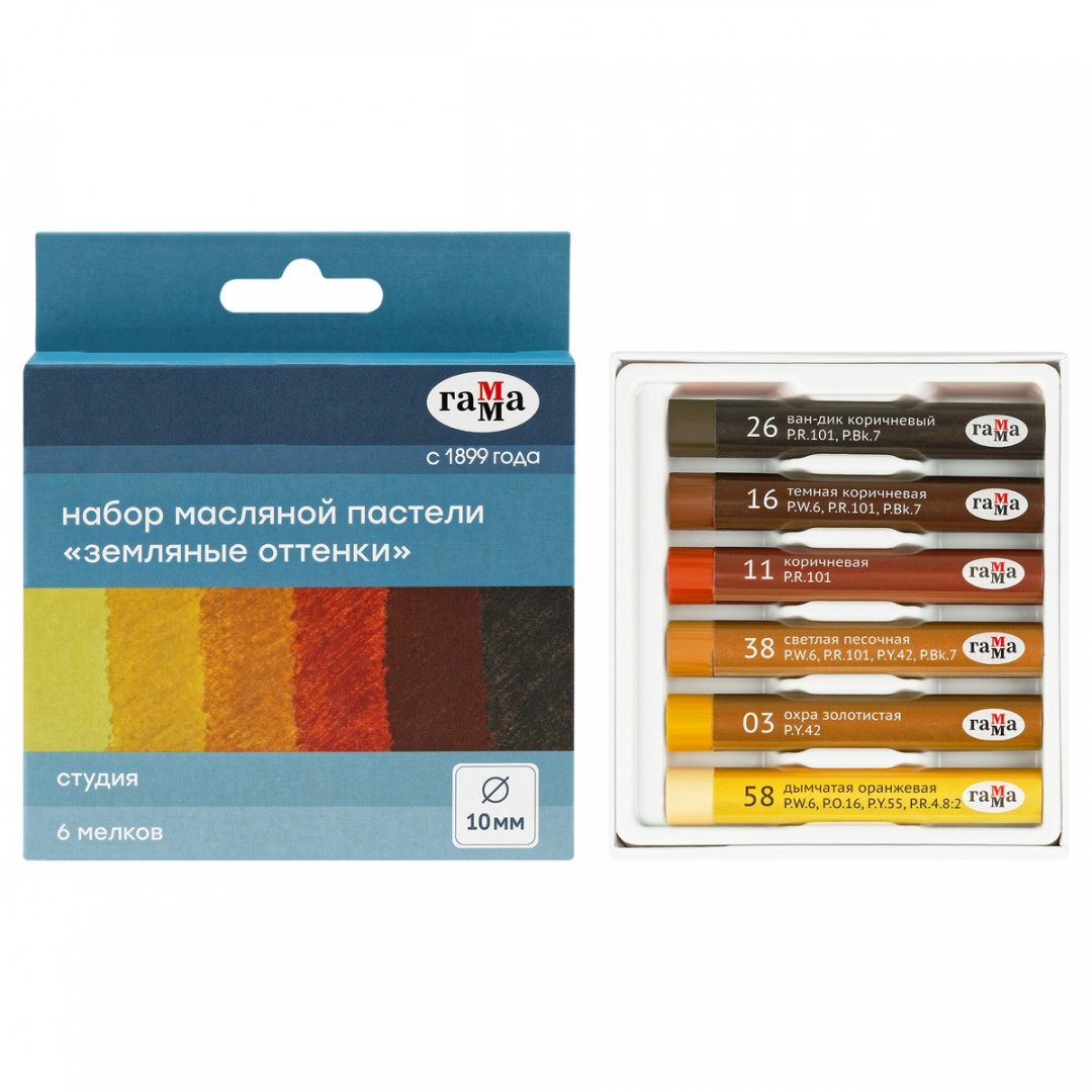 Набор масляной пастели "Студия", "Земляные оттенки", 6 цветов, картон. упак., европодвес