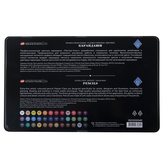 Цветные карандаши «Мастер-Класс» разработаны специально для художников, дизайнеров и иллюстраторов. Предназначены для живописи, рисования, работы в смешанных техниках. Высококачественные насыщенные пигменты грифеля обладают повышенной светостойкостью, интенсивностью и чистотой цвета. Тончайший помол пигментов придает карандашу мягкость нанесения, возможность смешивания цветов и получения плавных цветовых переходов. Корпус выполнен из мягкой древесины кедра, обеспечивающей легкое затачивание карандаша.