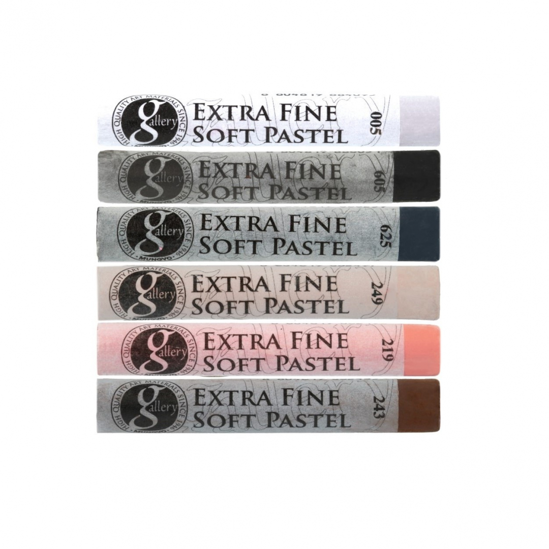 Набор из 6 круглых в сечении мелков полного размера мягкой профессиональной сухой пастели Gallery от корейского бренда Mungyo.