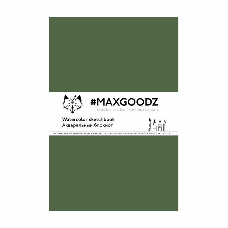 Скетчбук для акварели "Aquarellebook Light", 18х27см, 12л, 300г/м2, хлопок, болотный