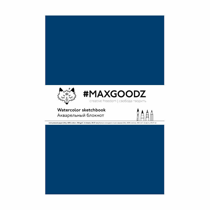 Скетчбук для акварели "Aquarellebook Light", 18х27см, 12л, 300г/м2, хлопок, синий
