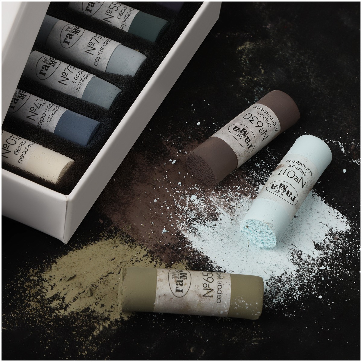 Набор художественной пастели «ГАММА» состоит из 12 благородных серых оттенков.