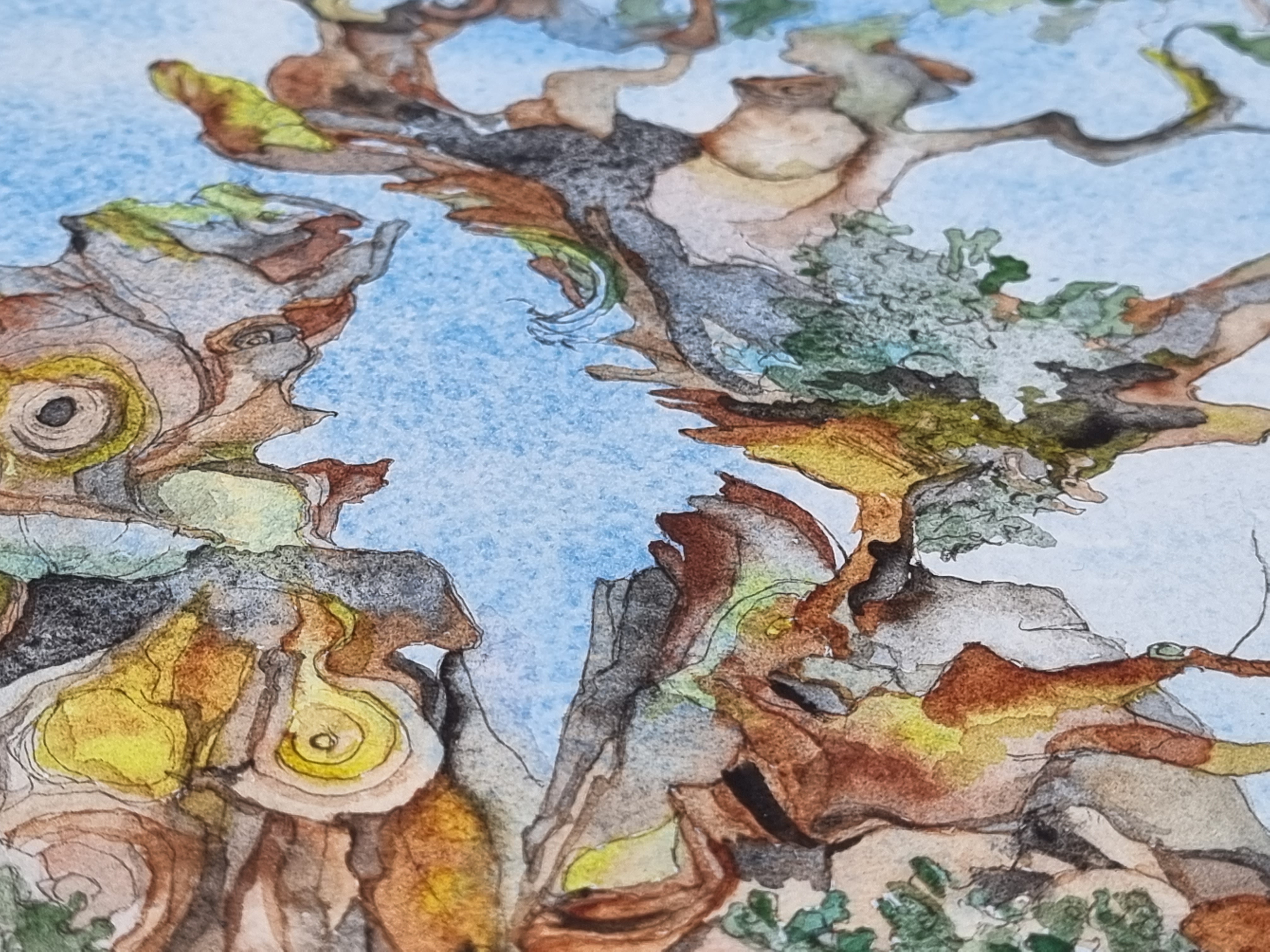 Бумага хорошо держит слои и любые соотношения краски. Позволяет производить смешения прямо на листе долгое время «внося коррективы».