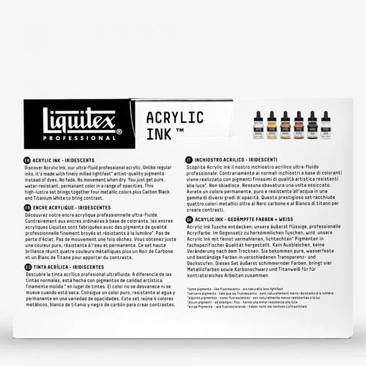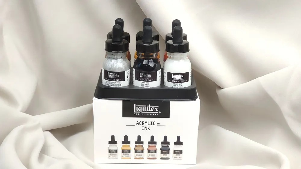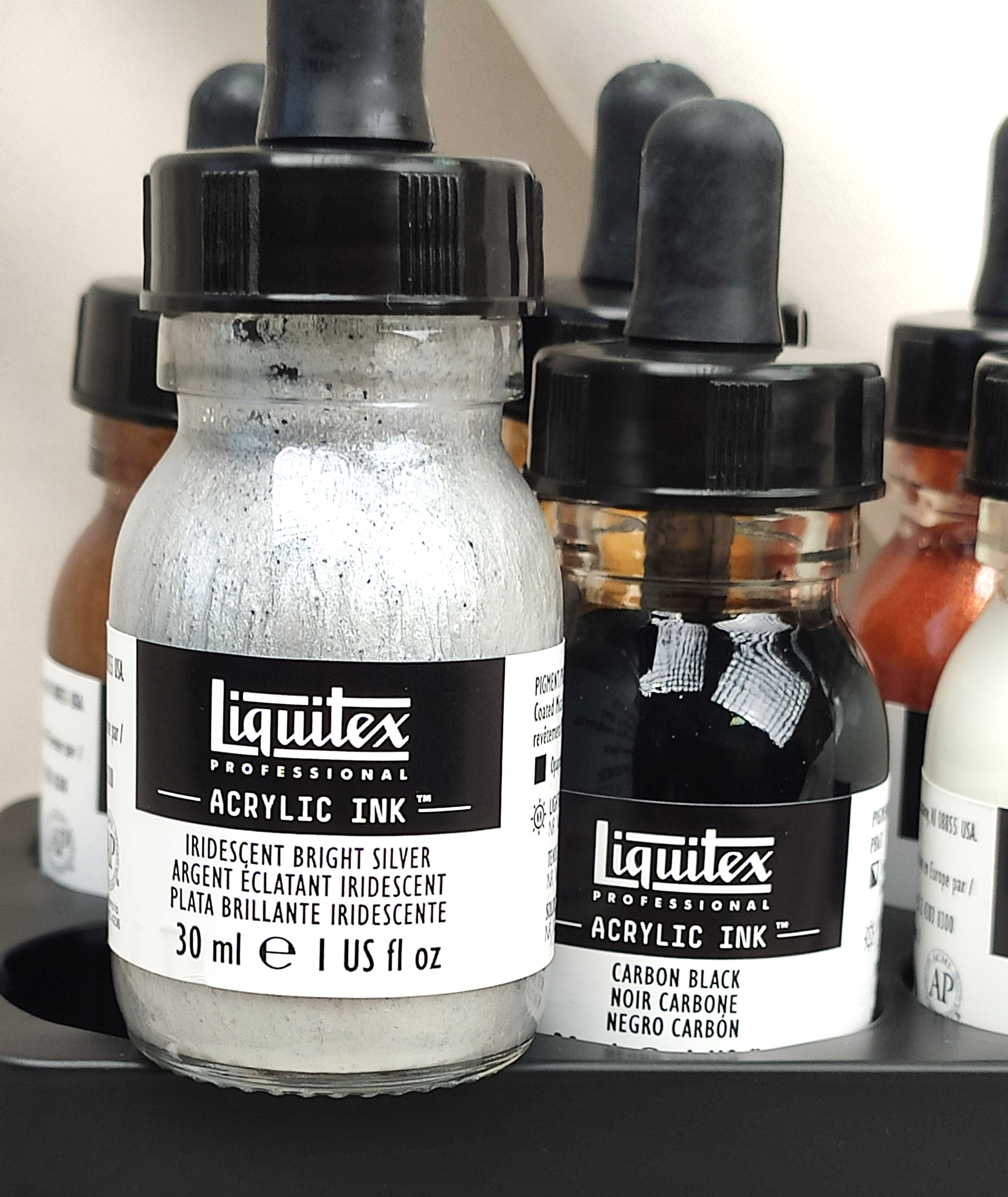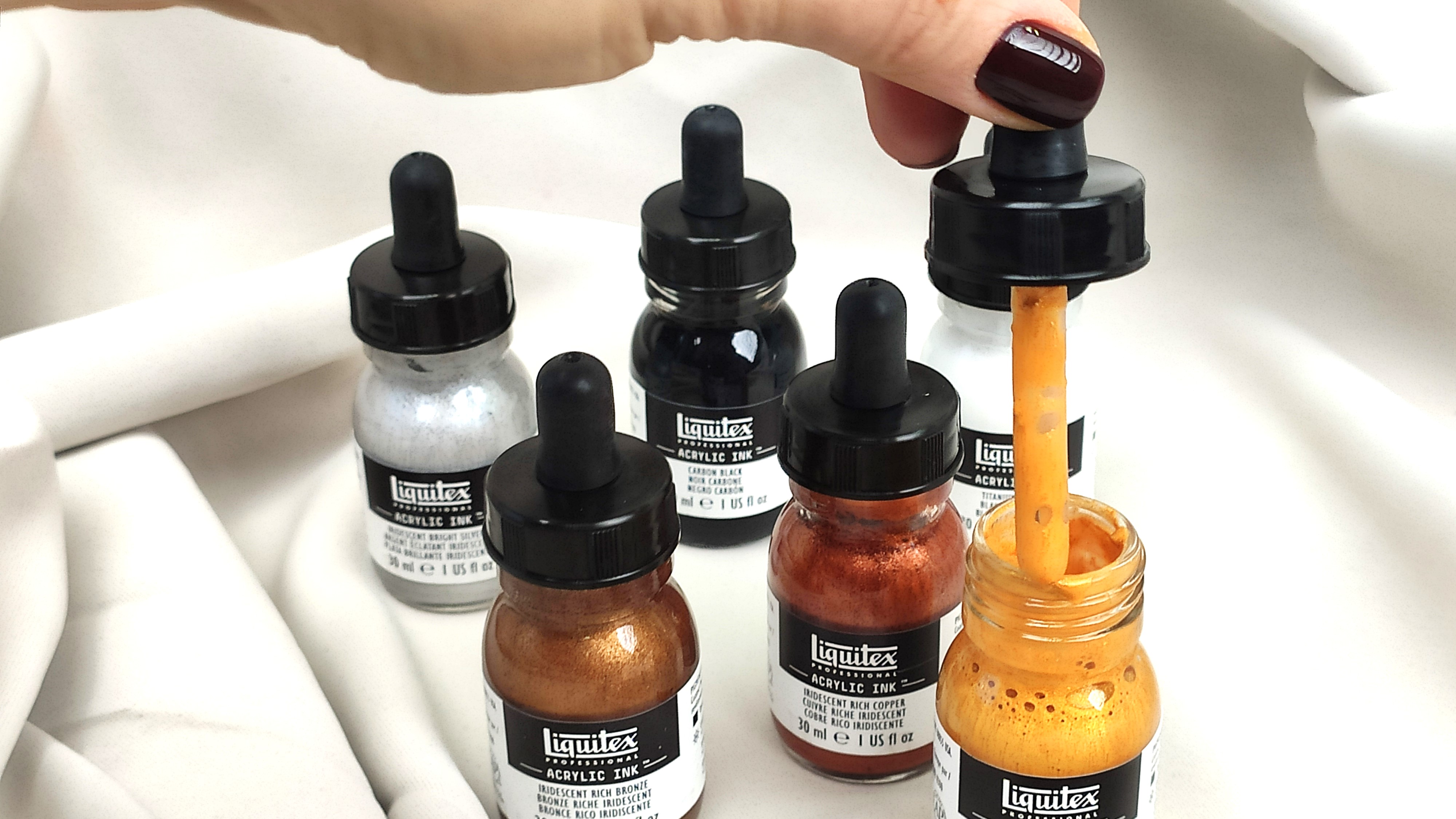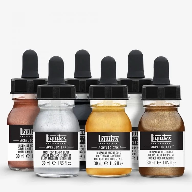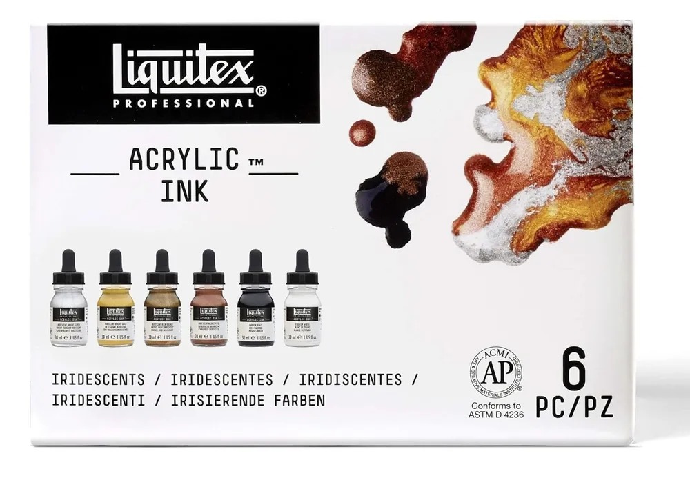 Liquitex Professional Acrylic Ink — это линейка чрезвычайно жидких акриловых красок, в которых используются сверхтонкие пигменты в современной акриловой эмульсии. Они быстро сохнут, долговечны, водостойки и не засоряются, что делает их идеальными для различных техник, от акварельных эффектов до стемпинга.